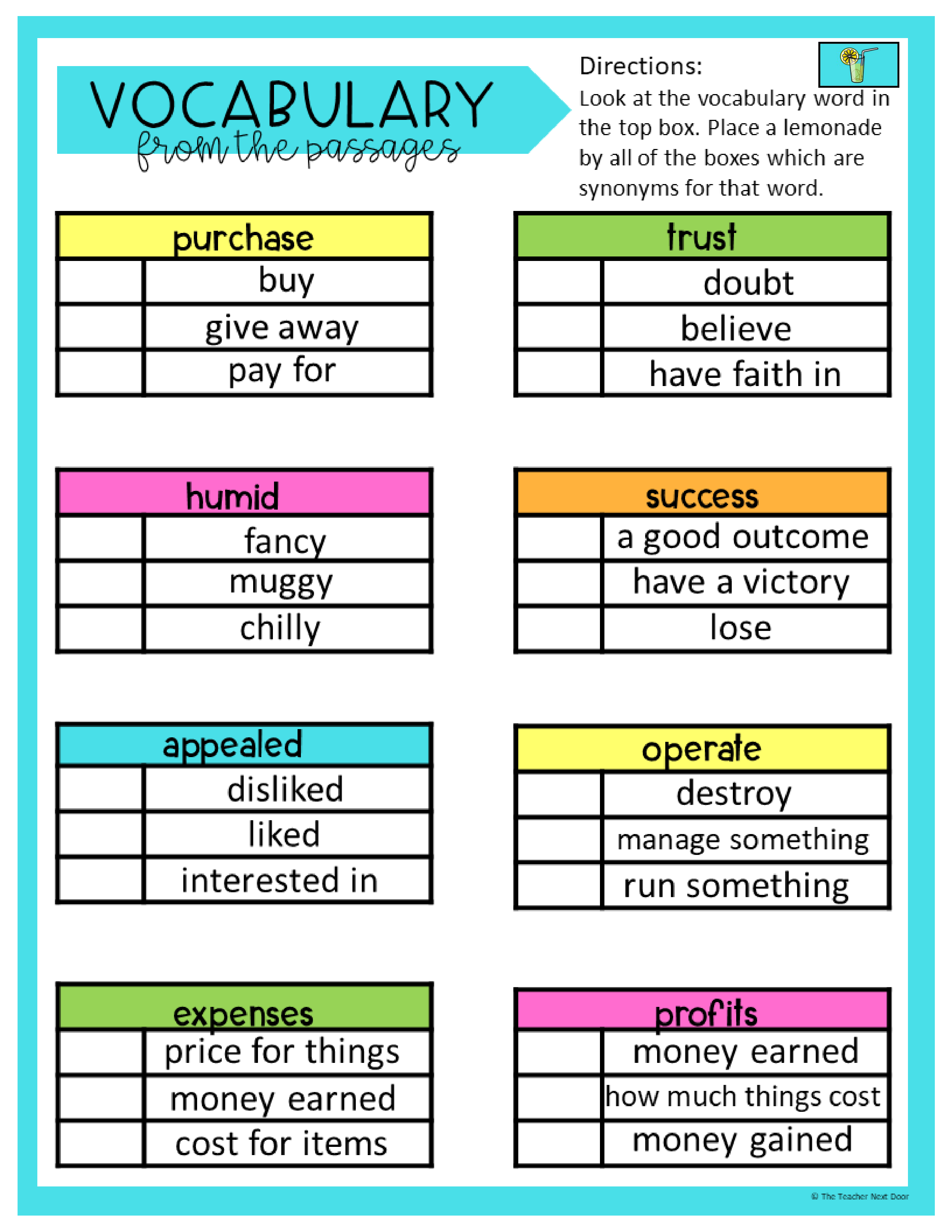 Look at the vocabulary word highlighted. Check all boxes which are synonyms for that word.