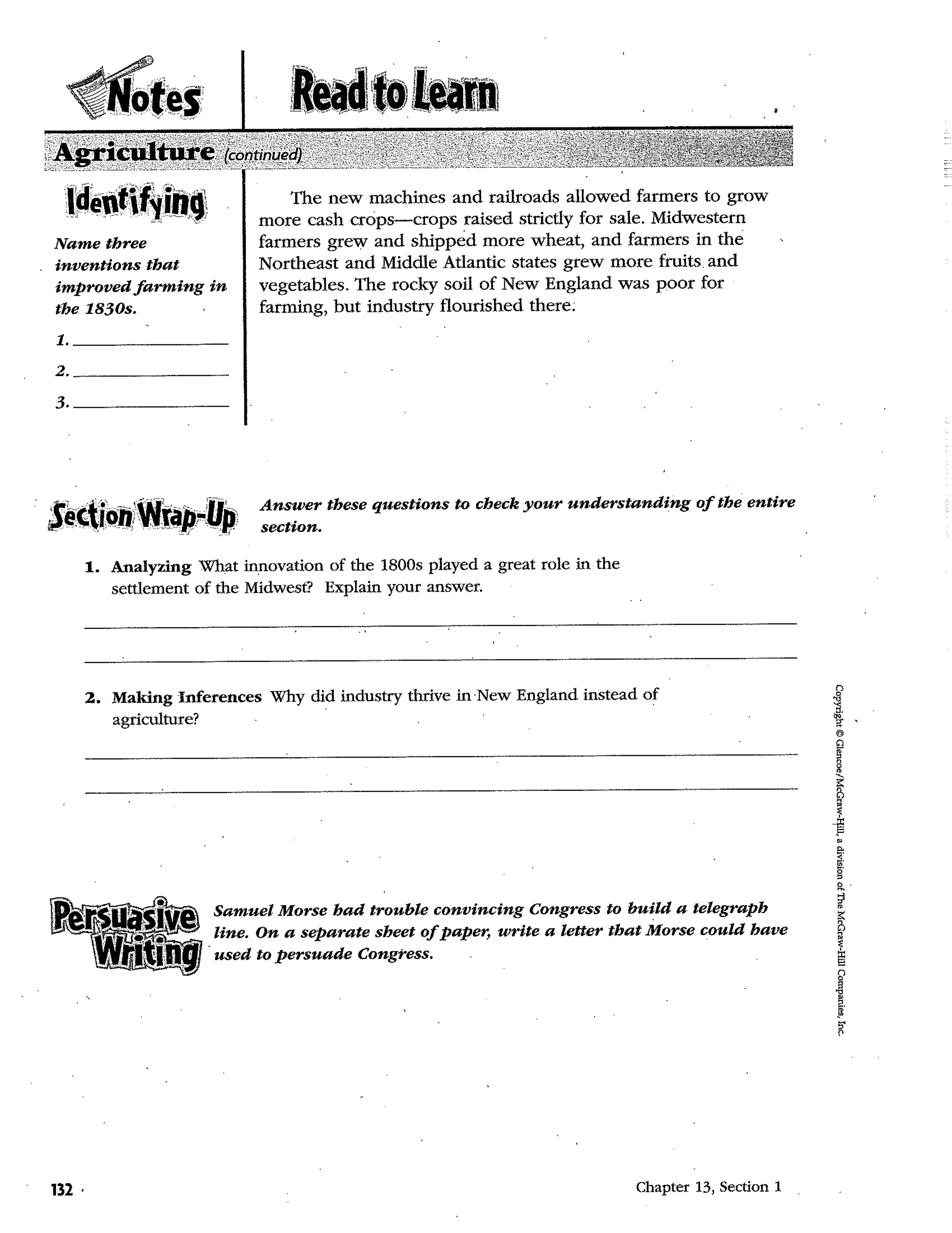 D The rocky soil of New England and its climate encouraged farming there, but people turned to industry instead.