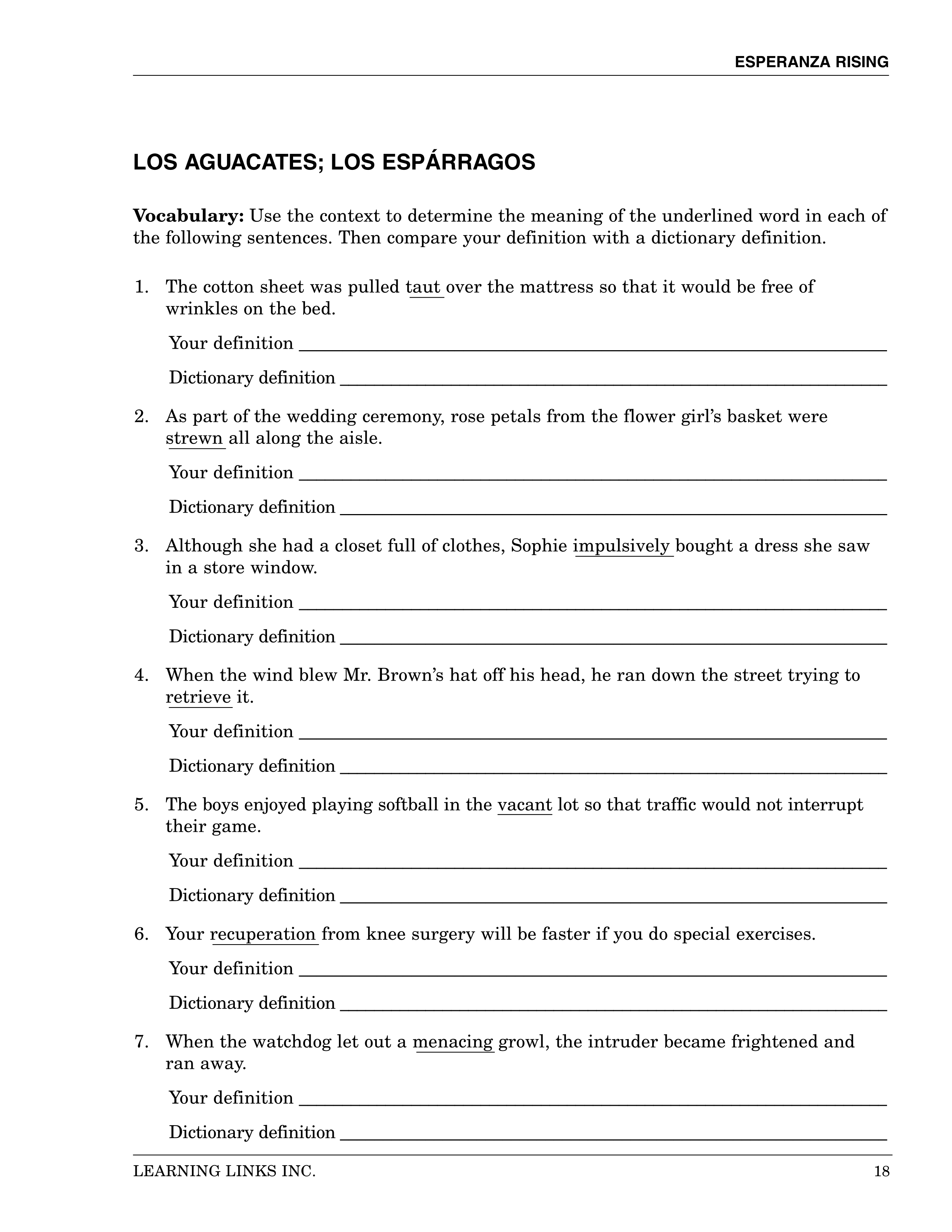 Esperanza Rising: Los Aguacates; Los Esparragos