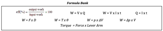 This quiz/test covers work done in an electrical system for an Applied Physics class. The equations for work done in an electrical system are W=V x Q and W=V x I x t.
