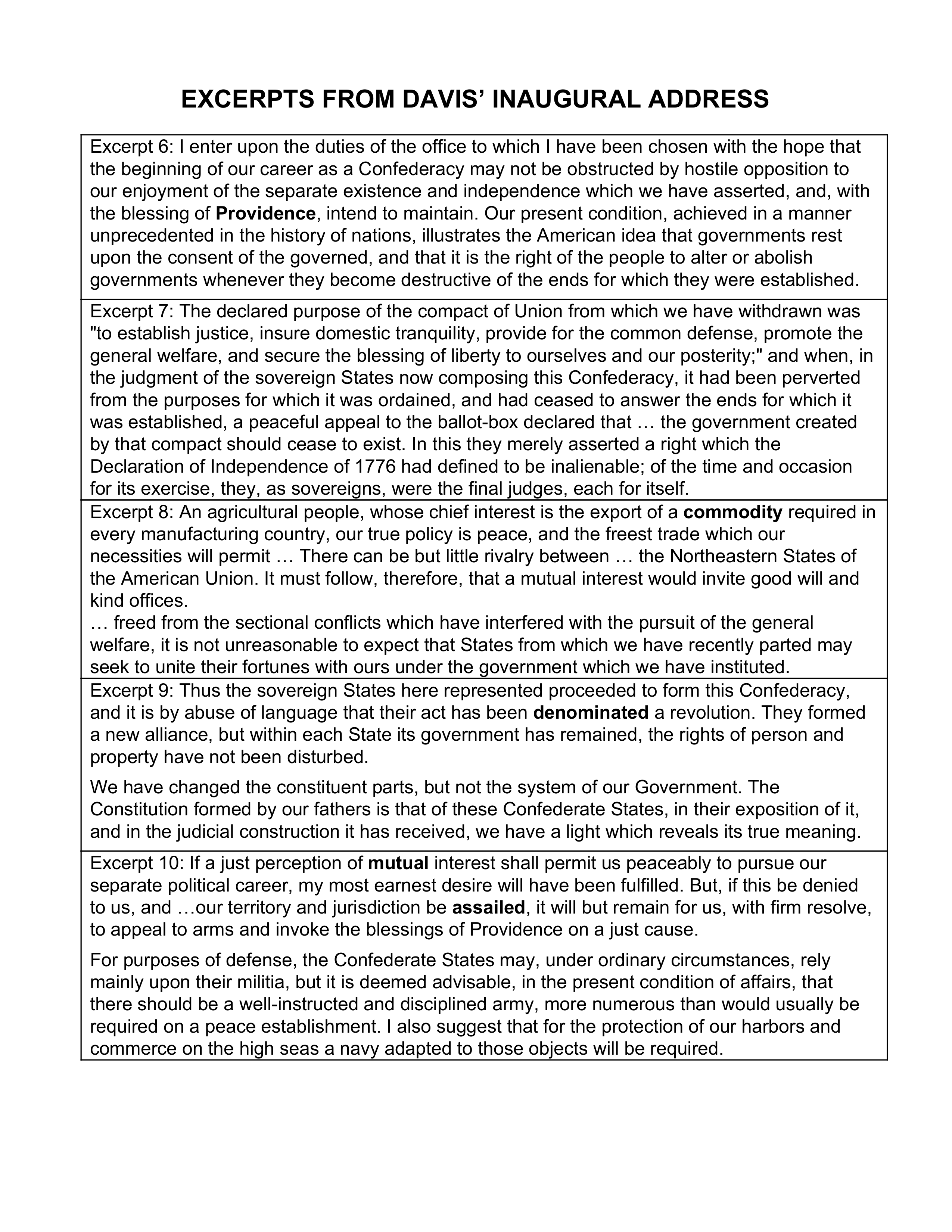 Compare Davis’s words to Lincoln’s in Excerpt 3. What difference does Davis have with Lincoln?
