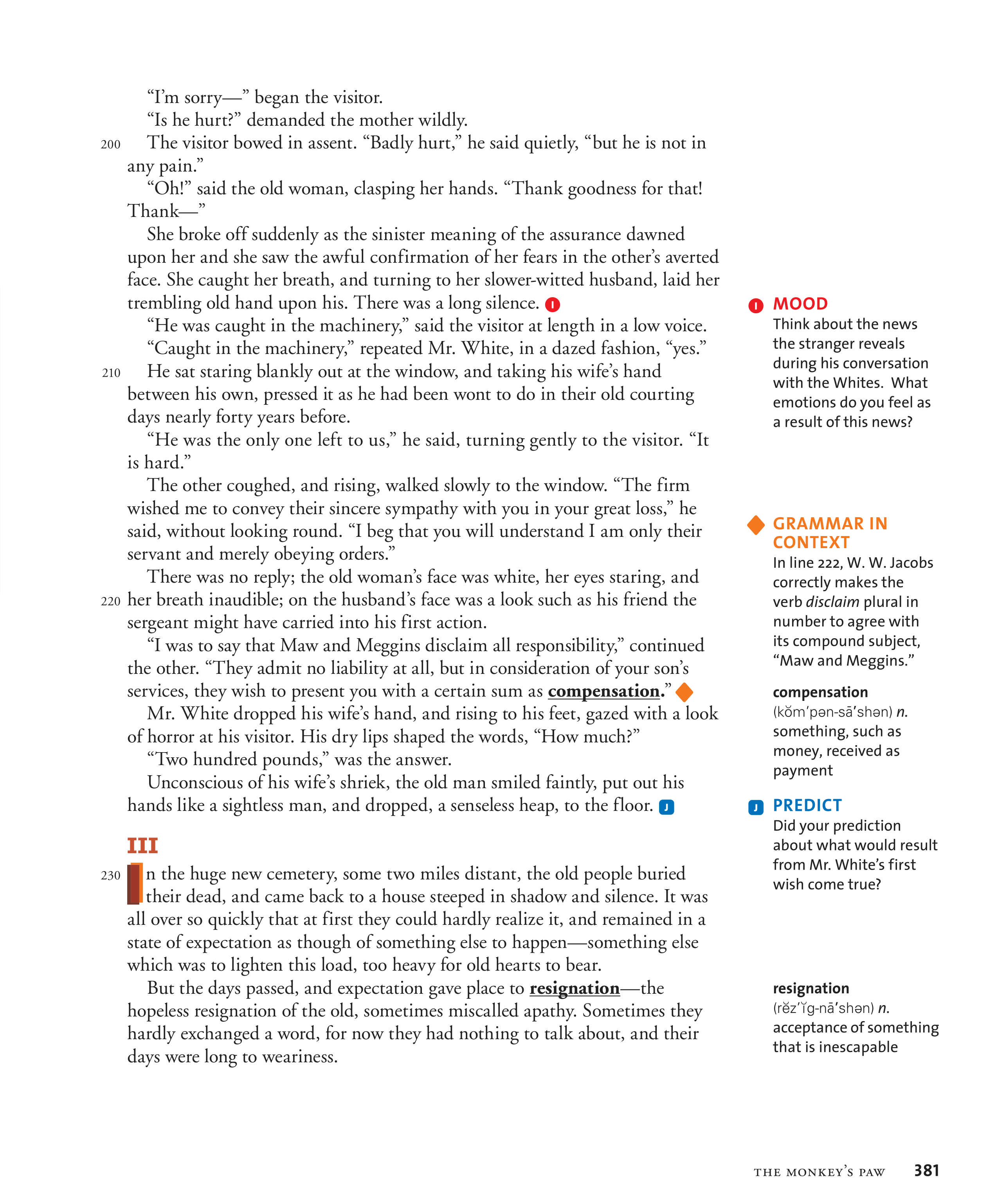 On page 2, which of the following characters knows more about the monkey's paw than other characters do?