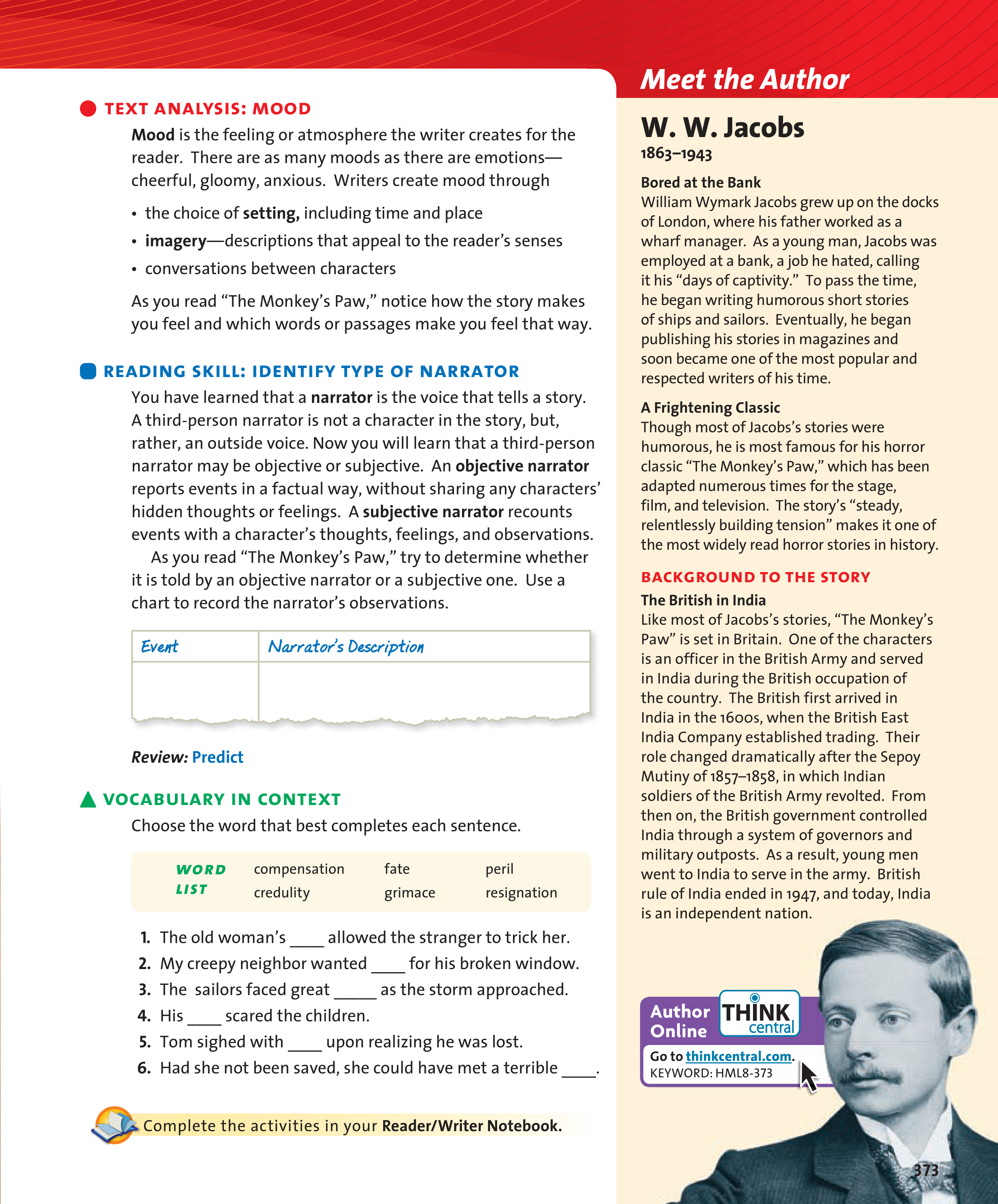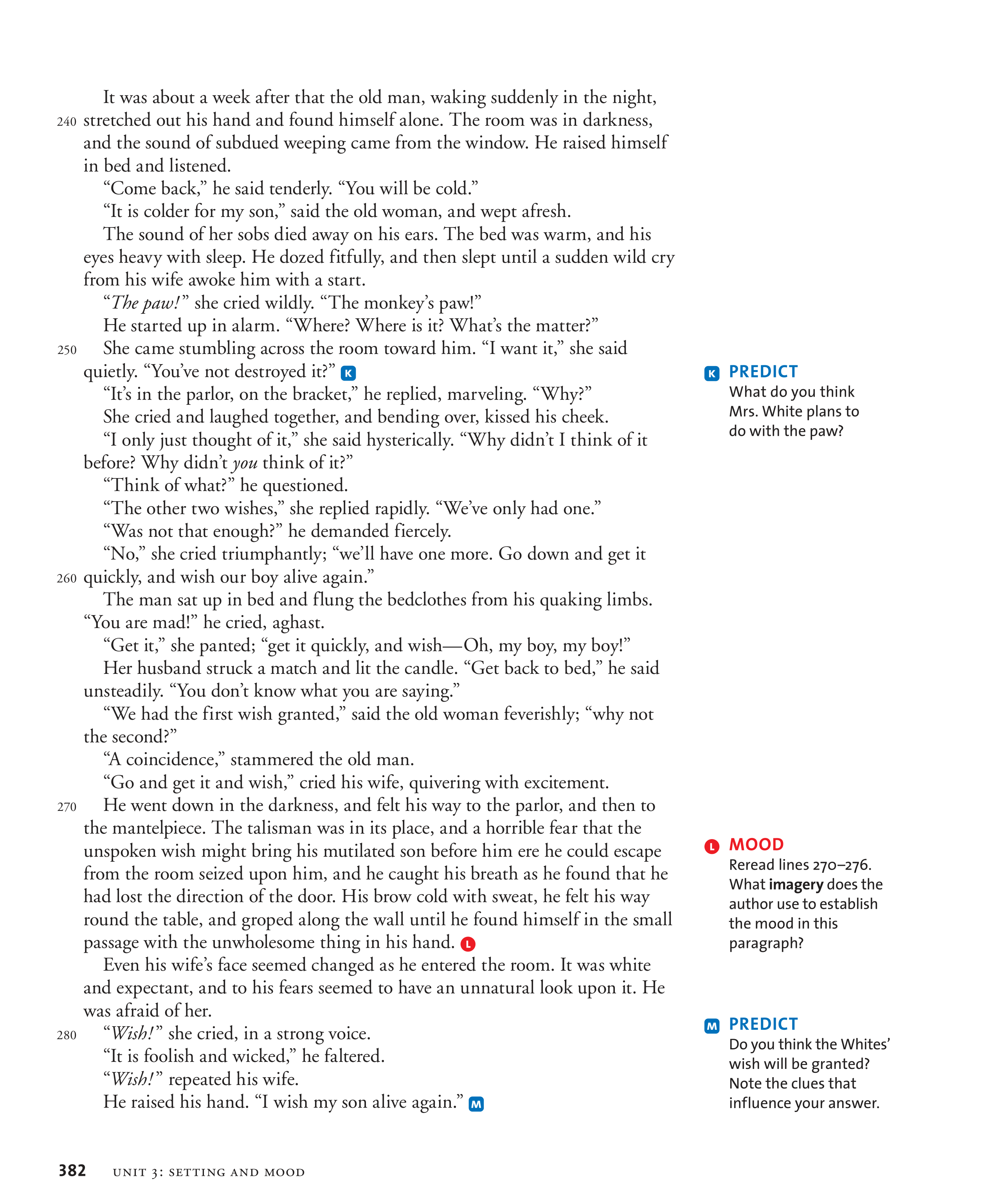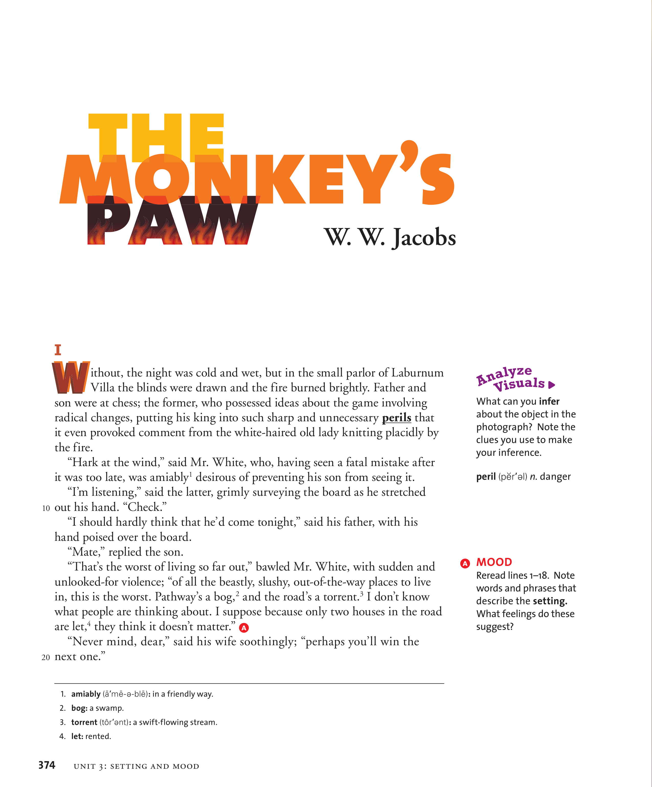 This is an assessment on "The Monkey's Paw" that includes the short story at the beginning for students to refer back to.