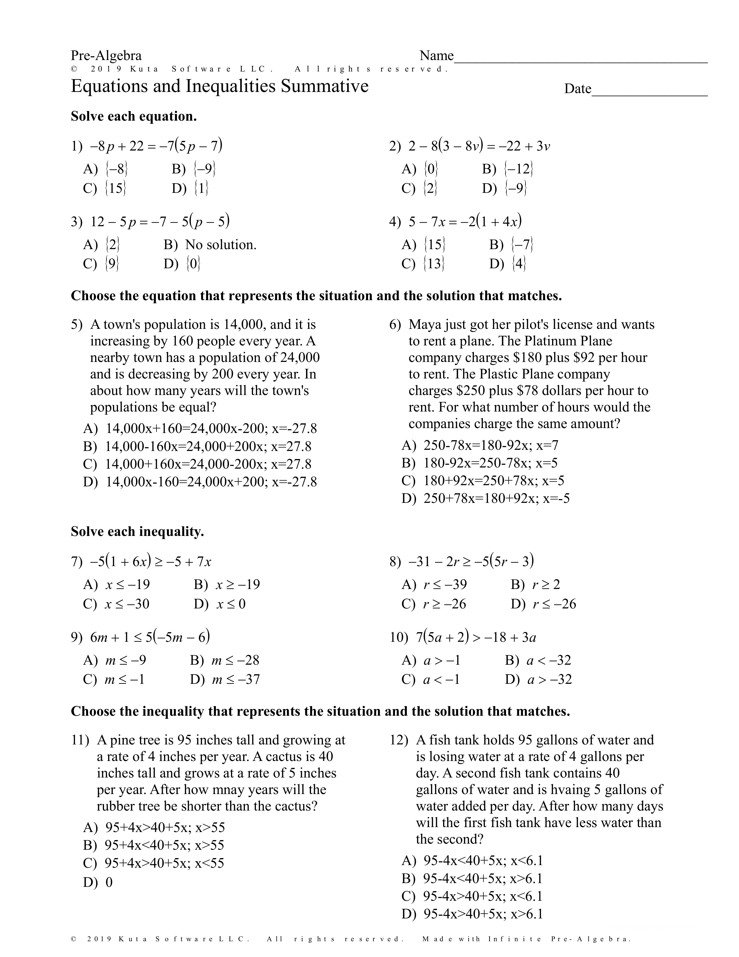 Equations and Inequalities Review