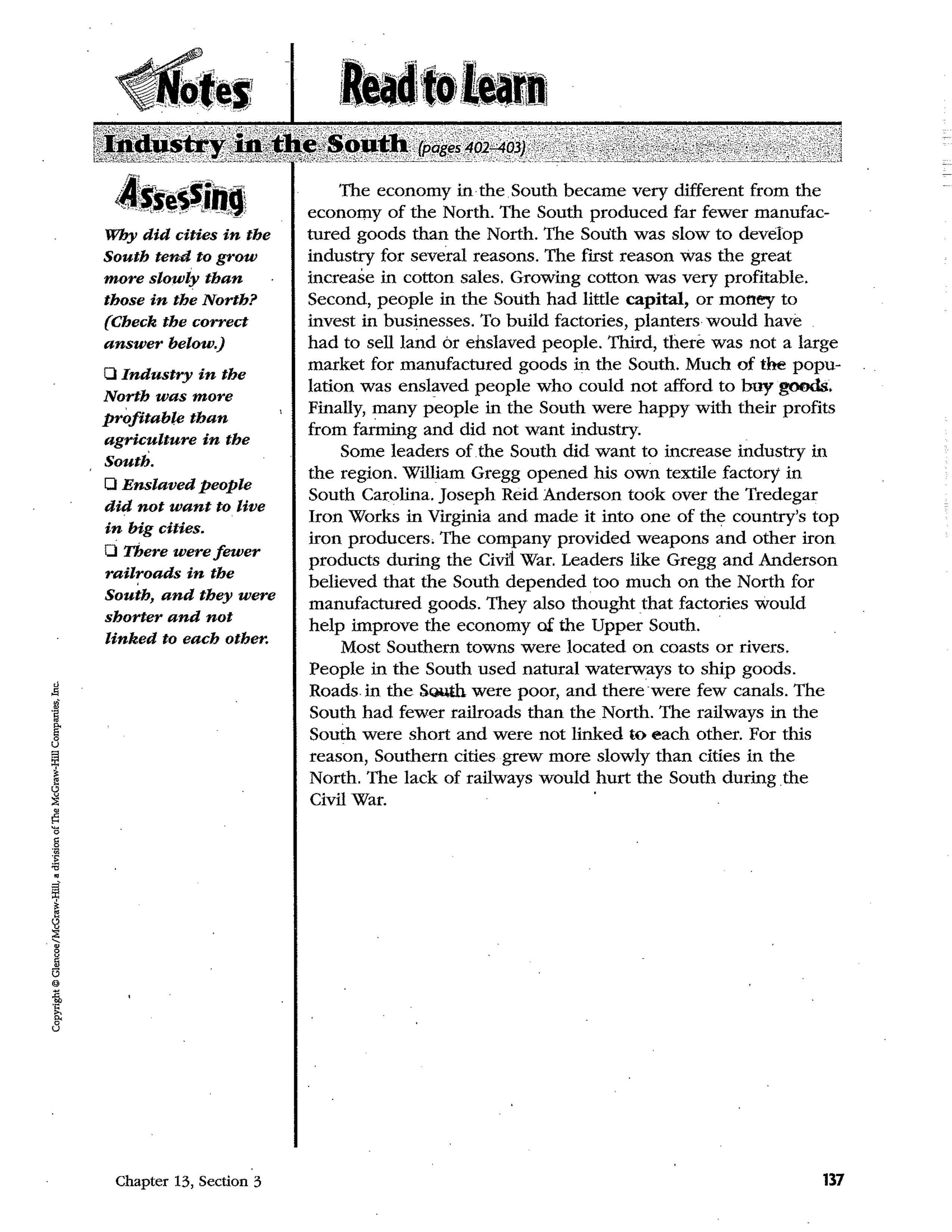 How do you think transportation and industry in the South would affect the region during the Civil War?