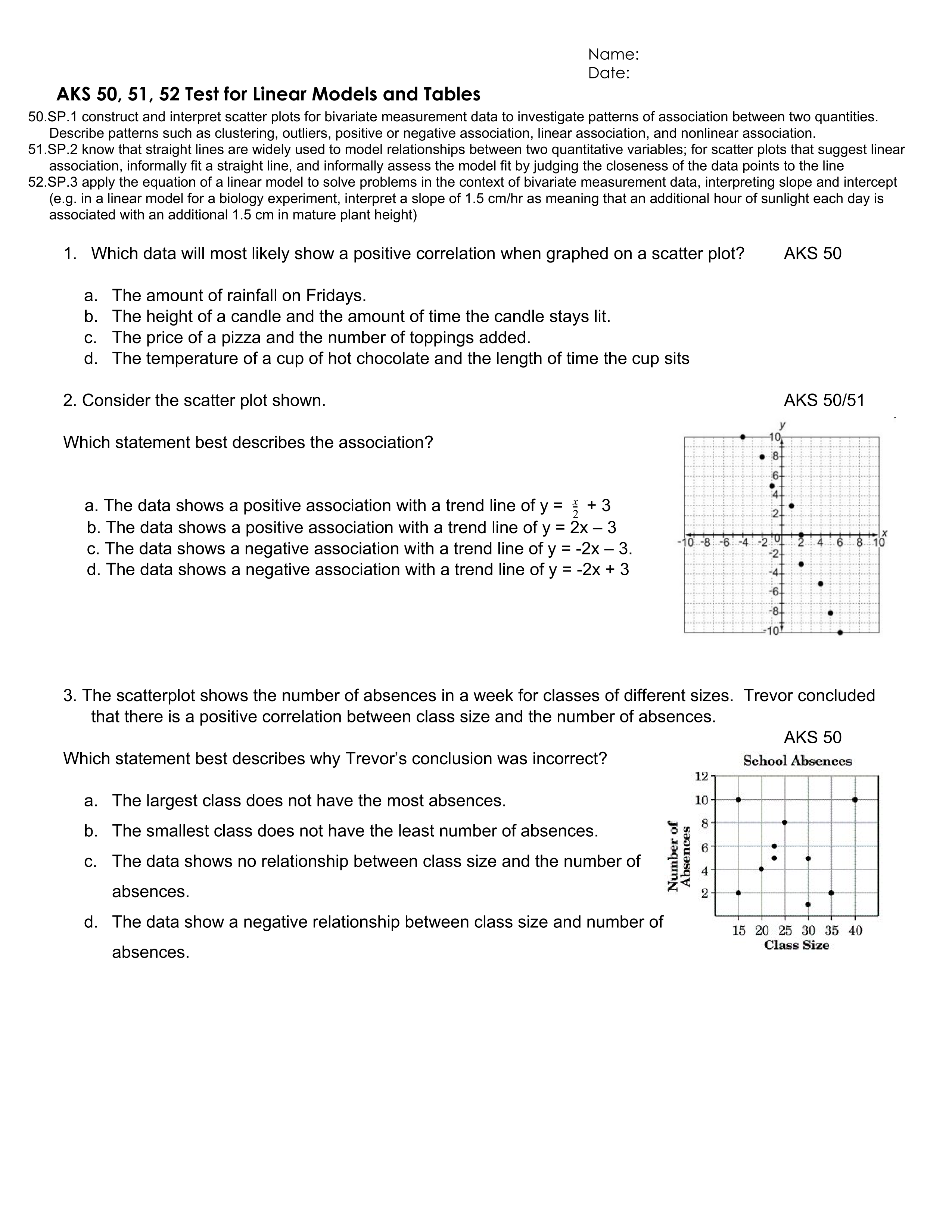 TEST AKS 50, 51, 52 Linear Models and Tables