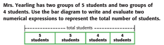 (4 x 5) + (4 x 5) = total students