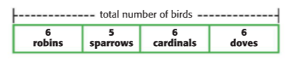 6 + 5 + 6 + 6 = total birds