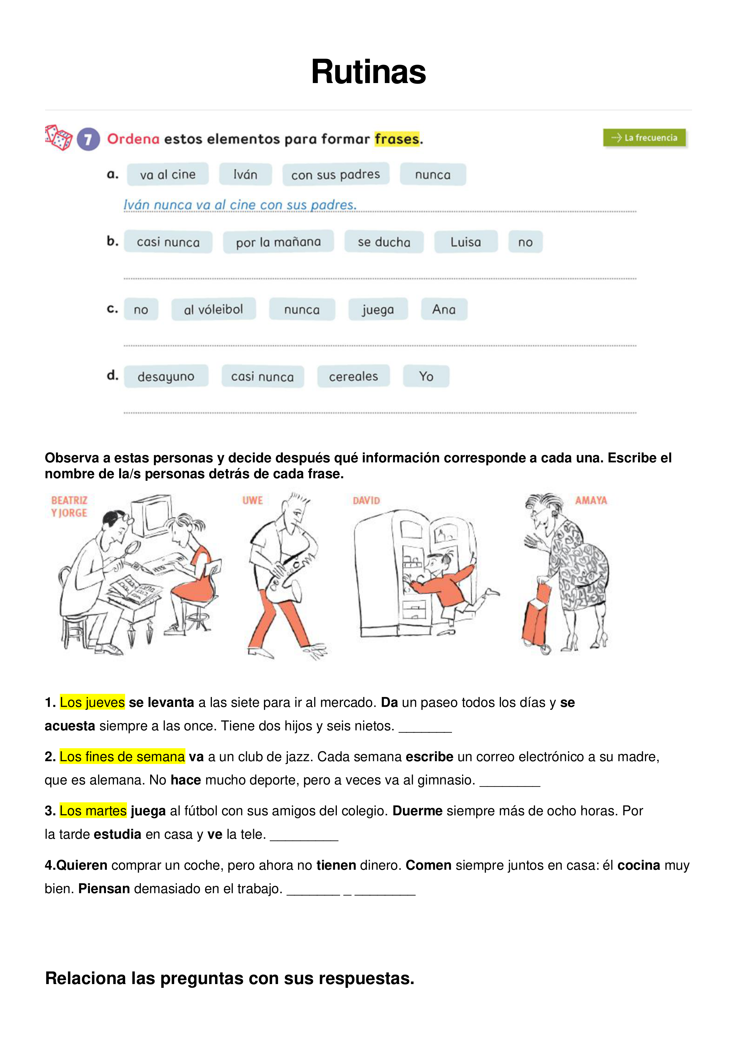 ¿Qué haces los jueves por la tarde? | arrow_right_alt | A la una |