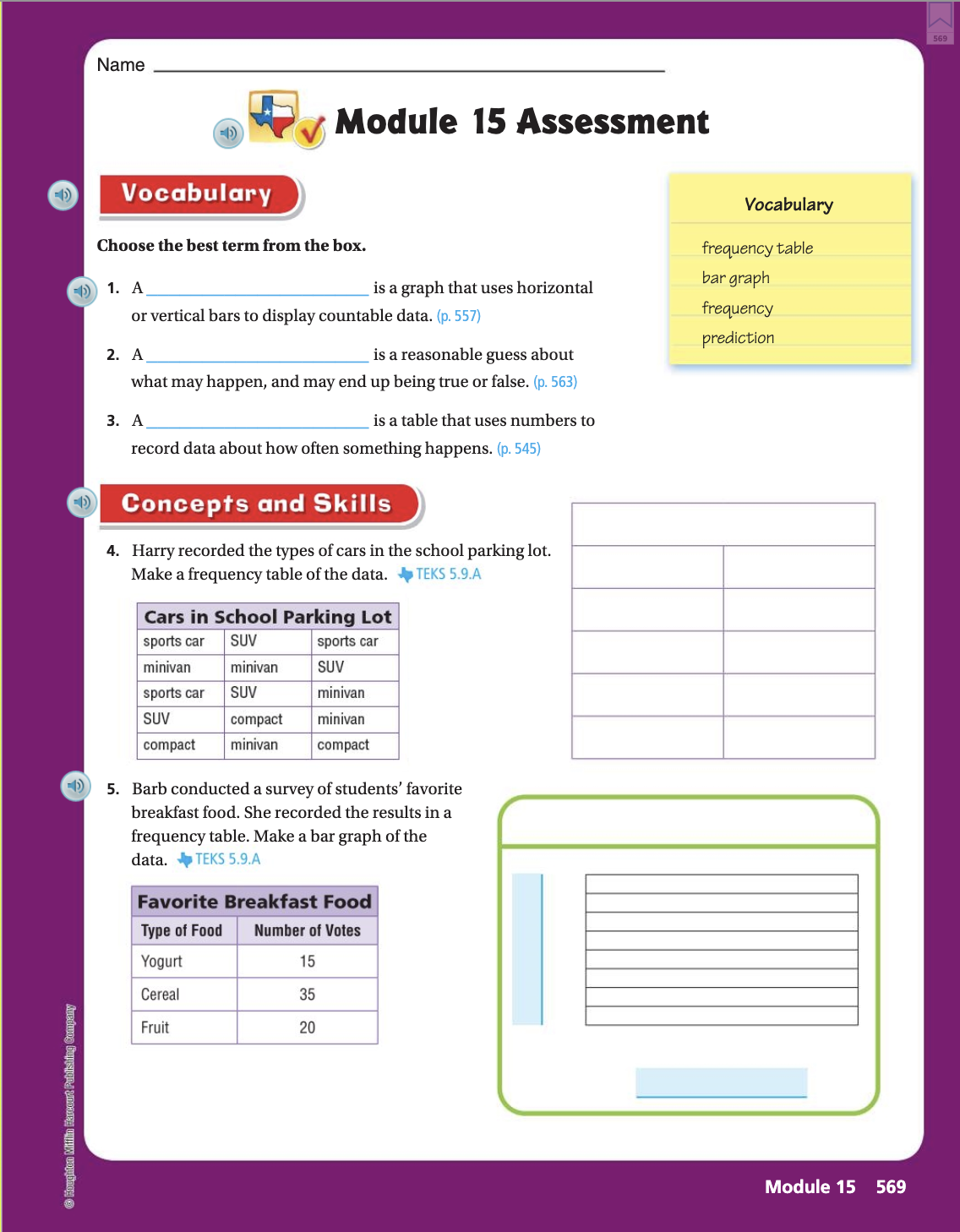 5.9 A C Module 15 Frequency Tables and Bar Graphs Test HBE