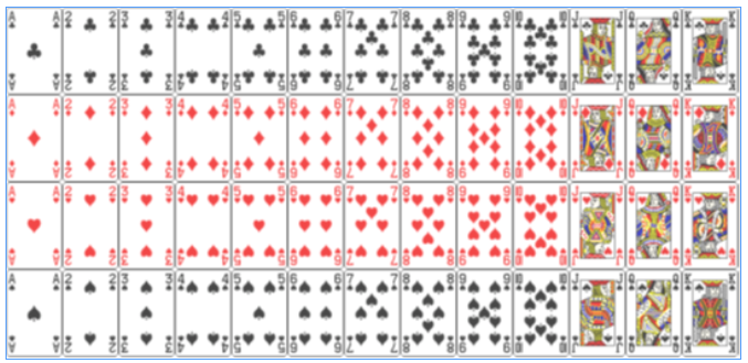 What is the drawing an even numbered card or a heart card from a standard deck of cards?