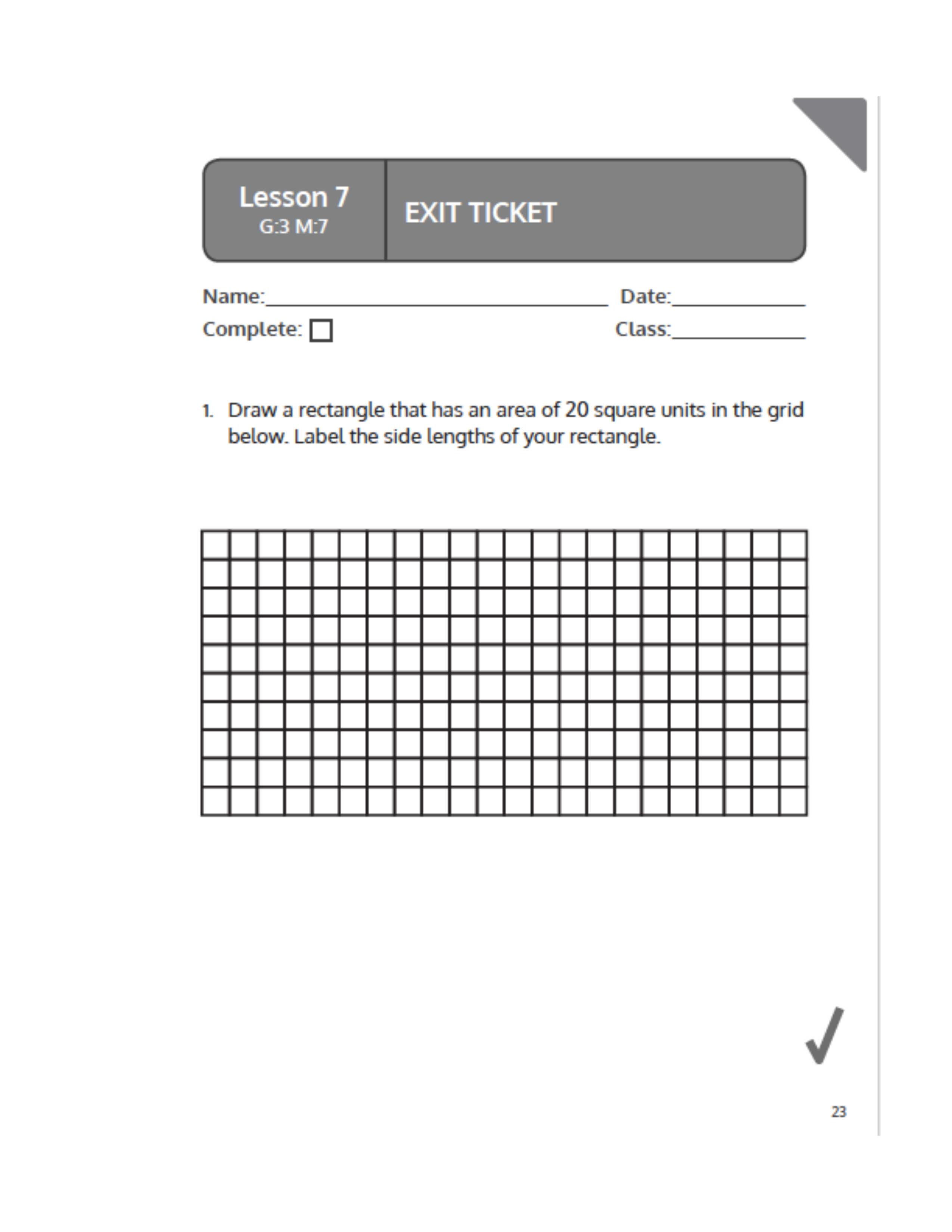Draw a rectangle that has an area of 20 square units in the grid below. Label the side lengths of your rectangle.
