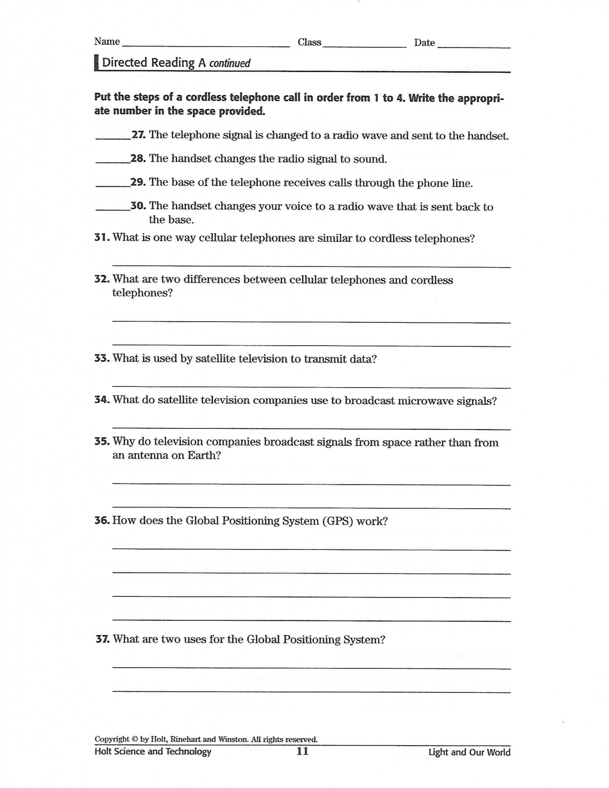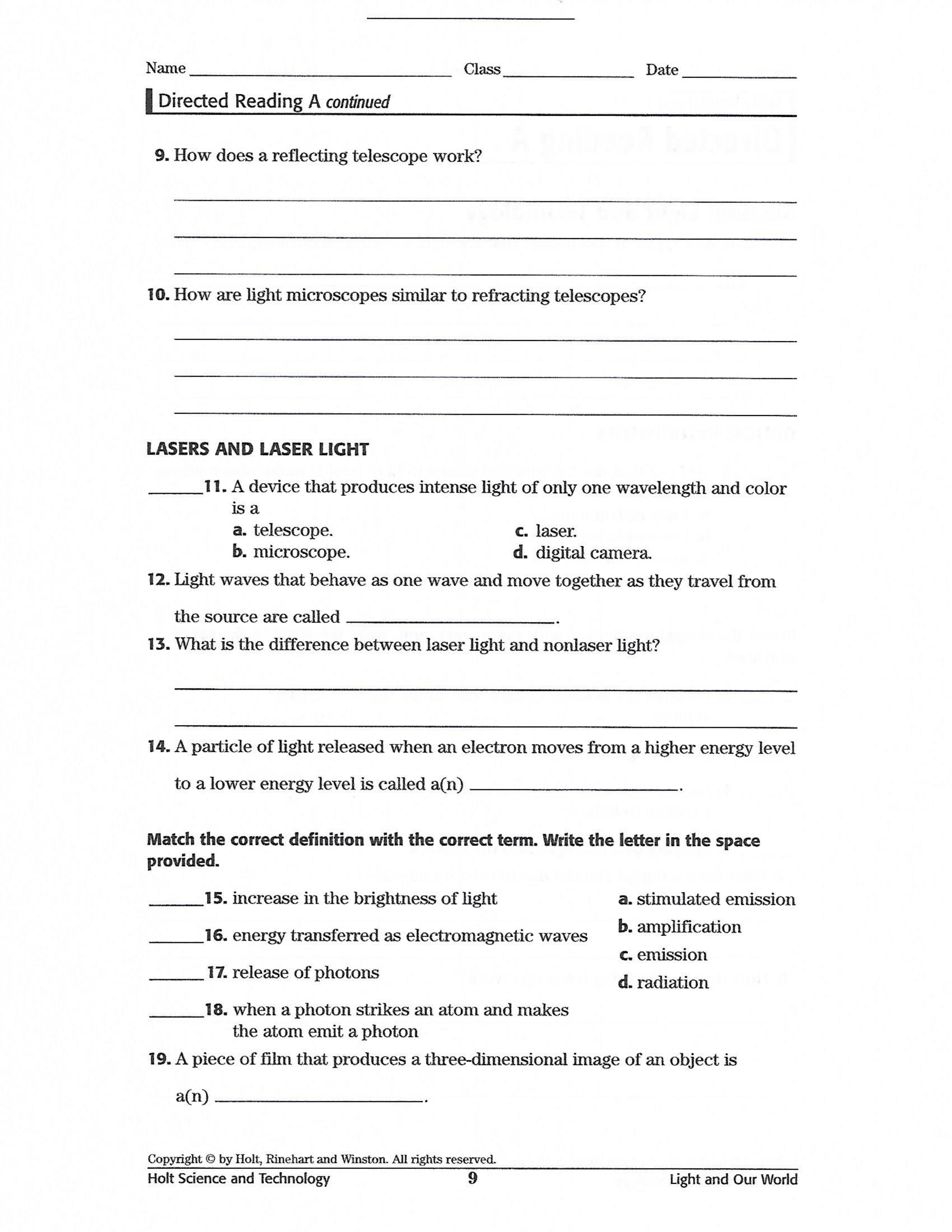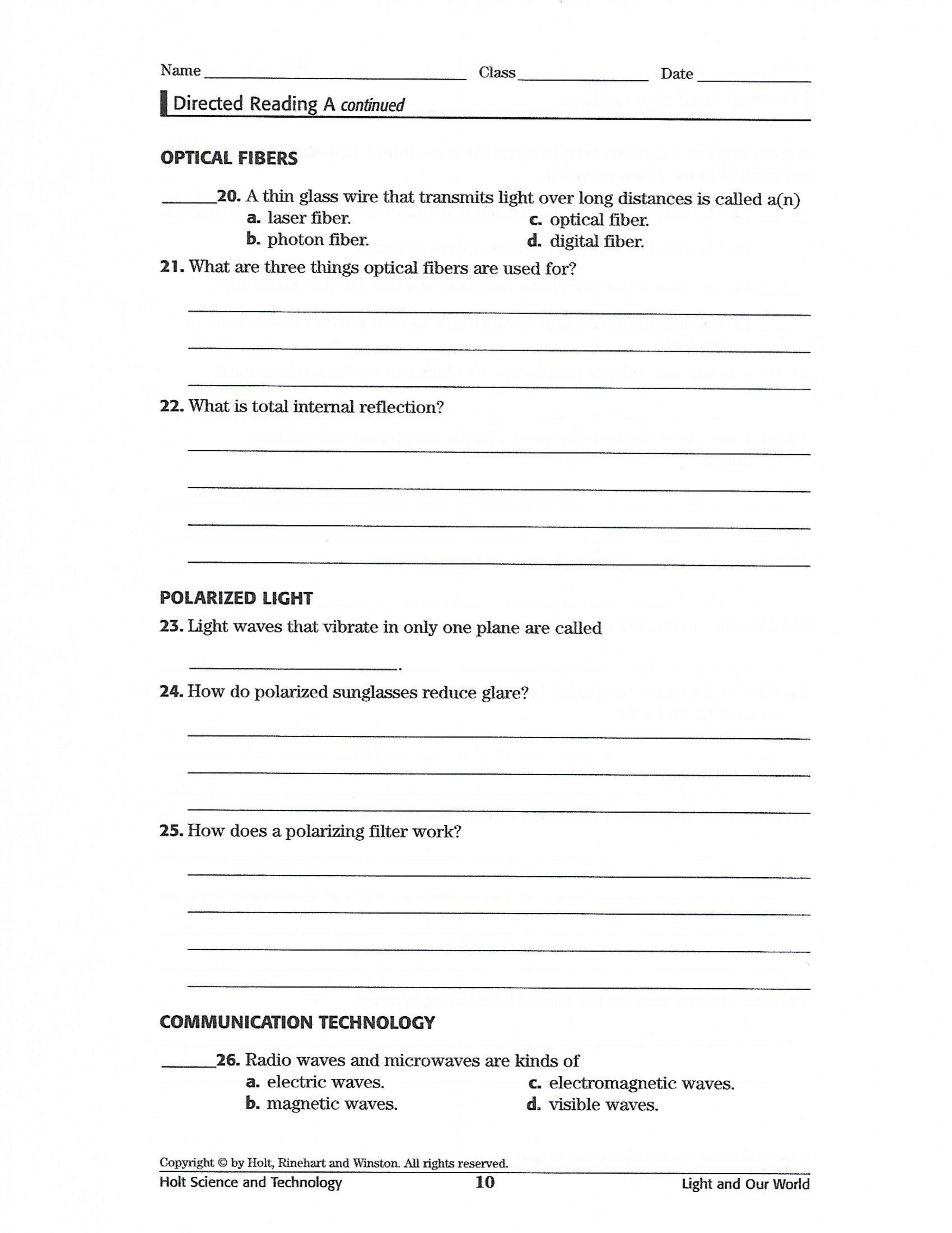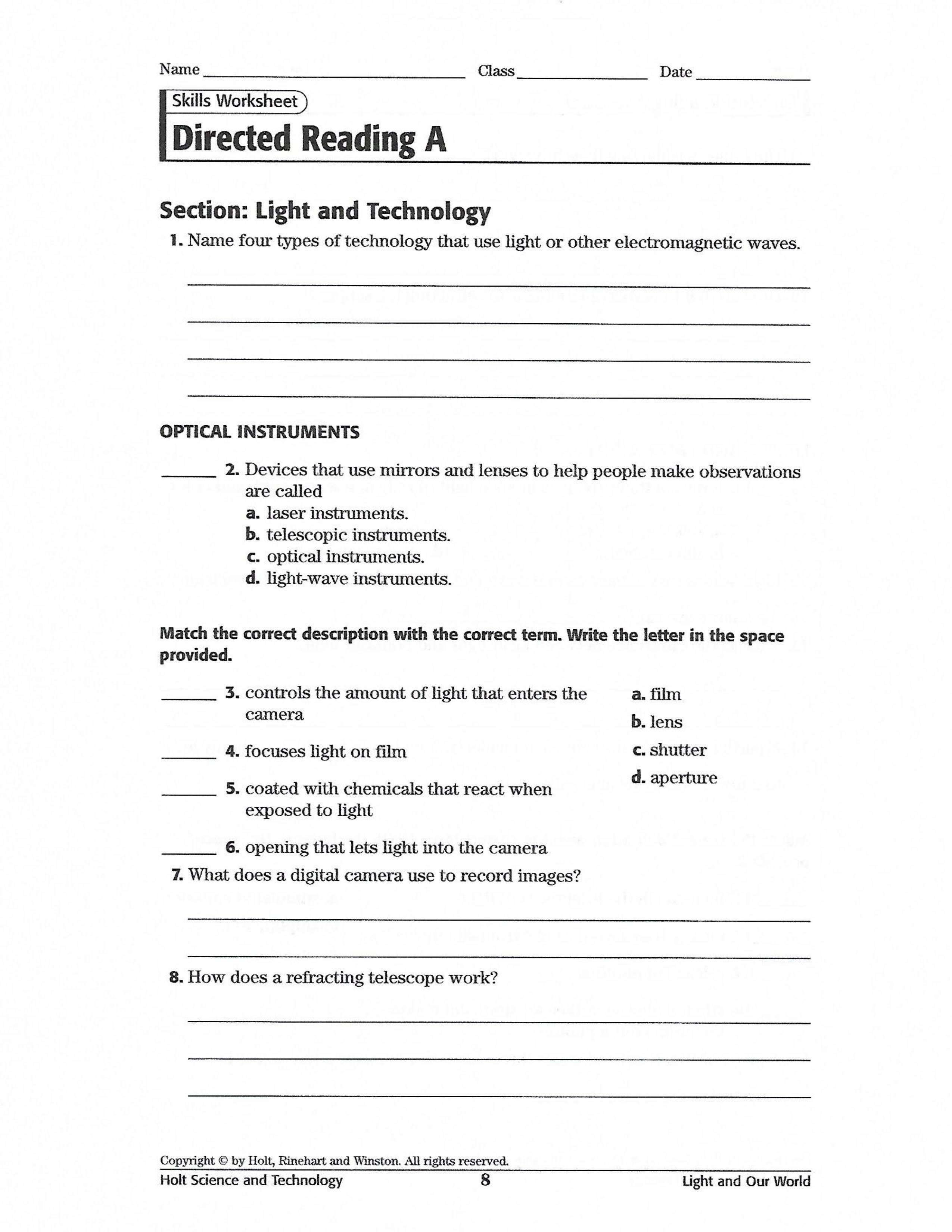 Light and Technology Worksheet