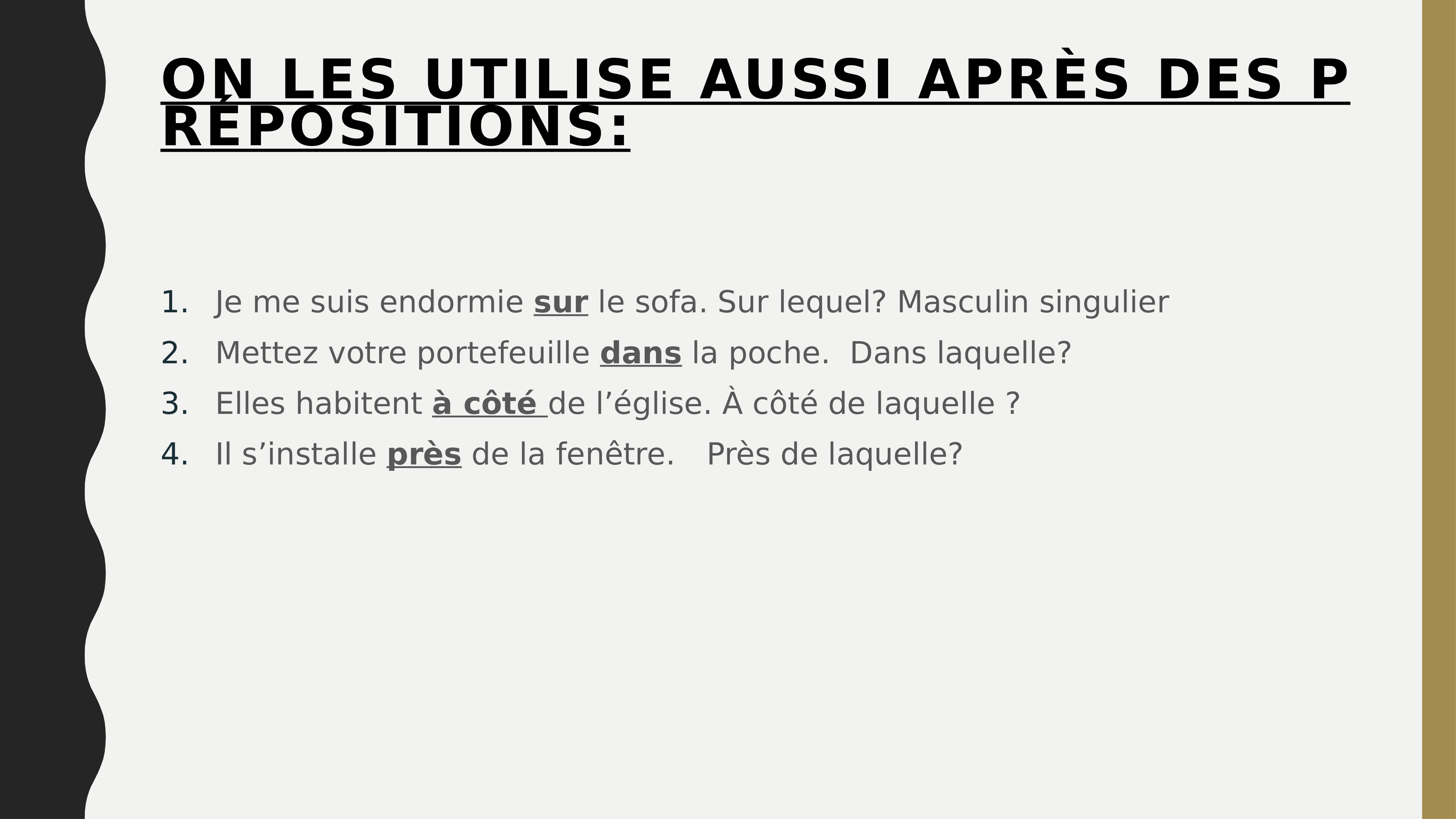 Oui, elle est avec les sac de plage.______ ? Les nôtres ou ceux des enfants? | arrow_right_alt | lesquelles |