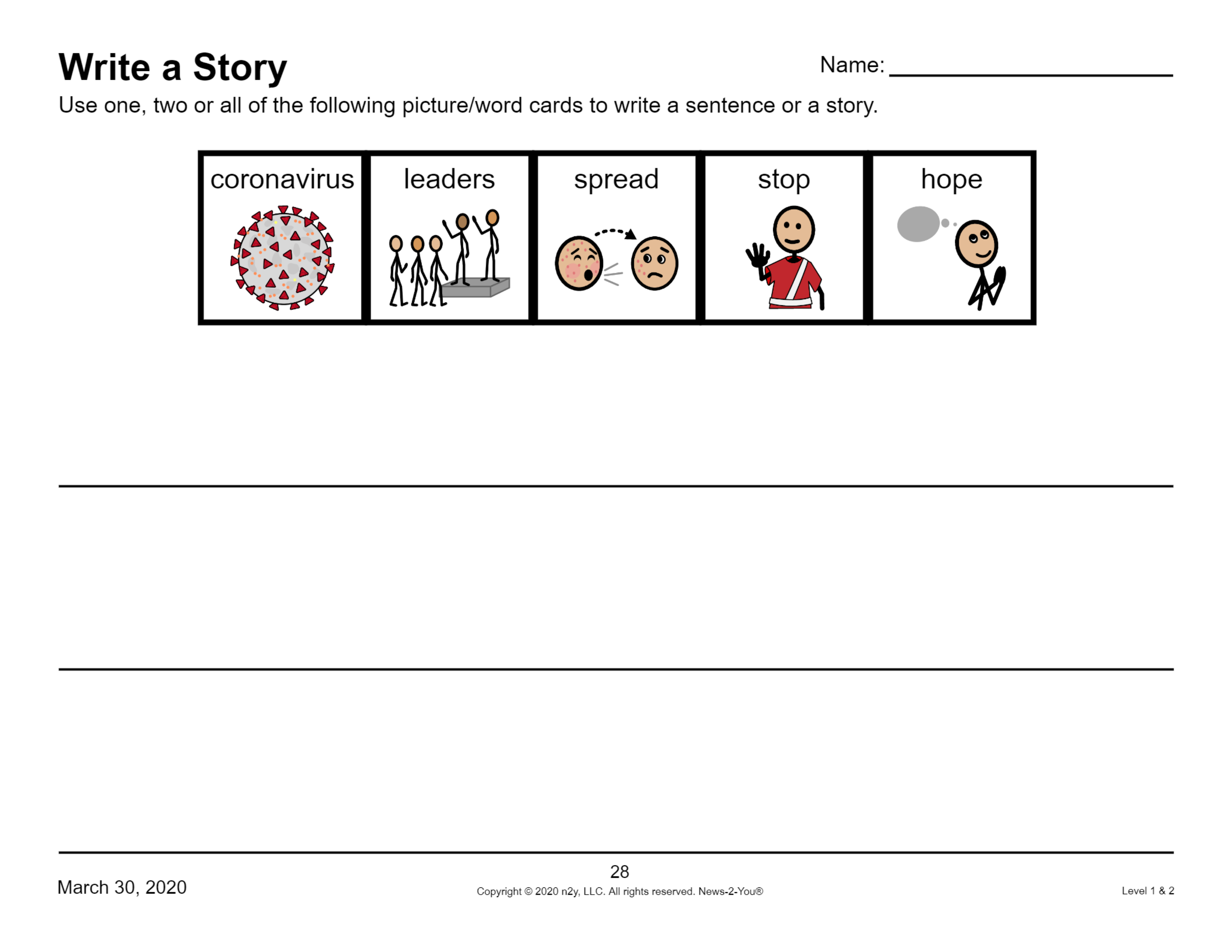 Use one, two, or all of the following picture/word cards to write a sentence or a story below!