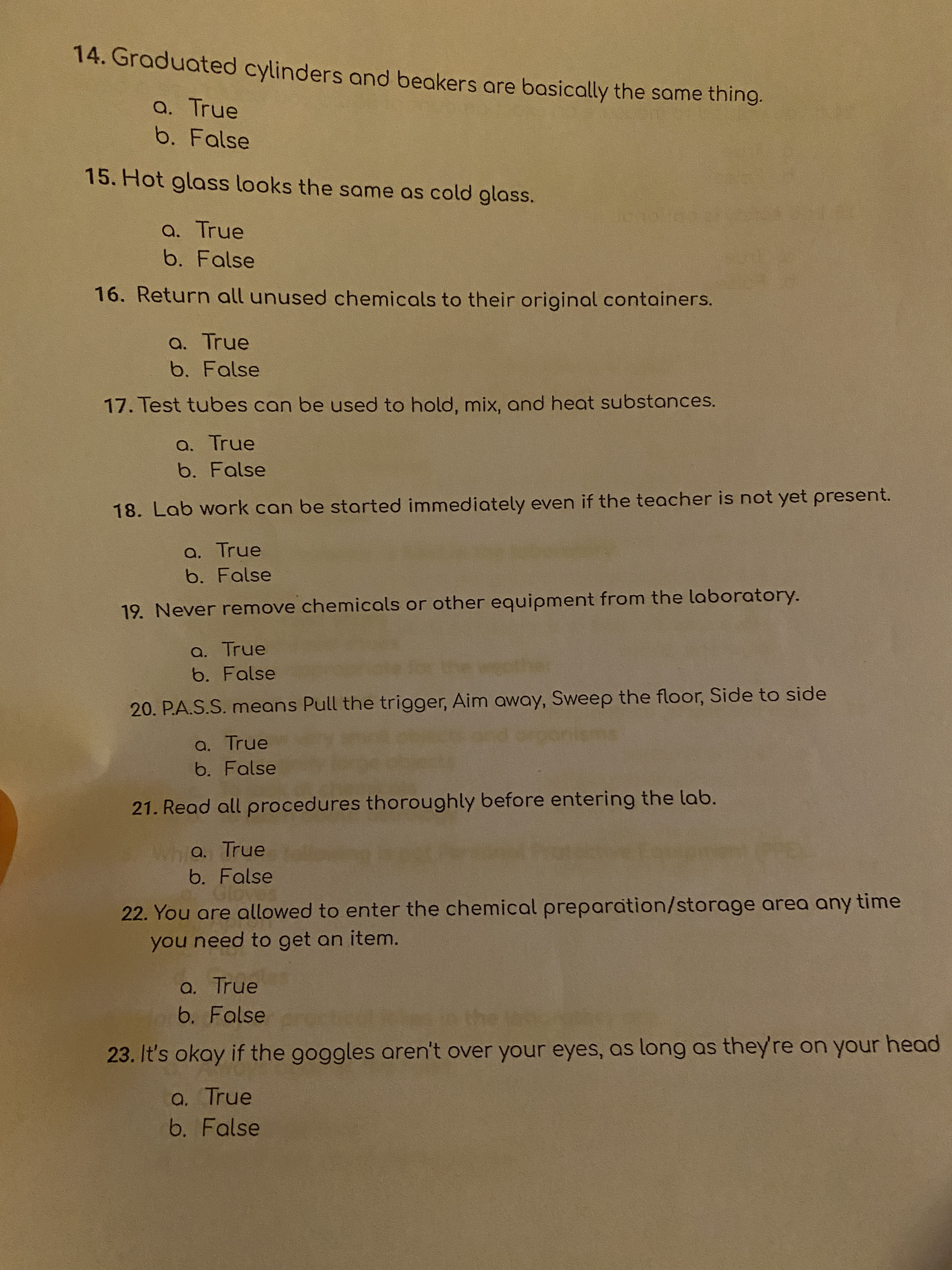 You are allowed to enter the chemical preparation/storage area any time you need to get an item