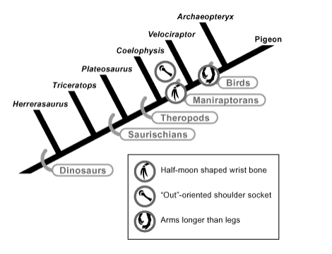 Look at the cladogram. There is direct fossil evidence that the shoulder and wrist of Velociraptor were capable of a wider range of motion than its earlier relatives. However, the fossil evidence does not indicate that the arms of Velociraptor were very long relative to leg length. So what might have been happening?