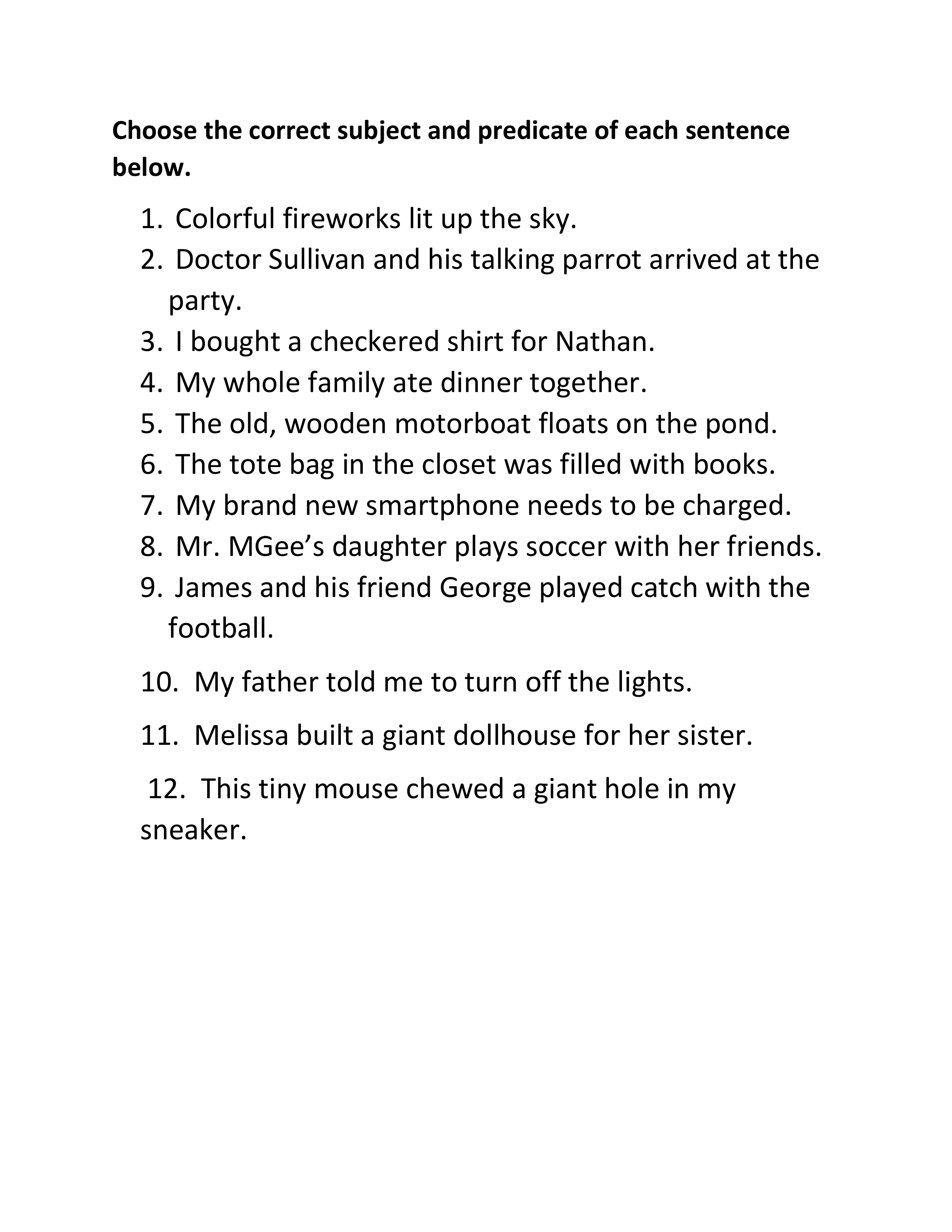 Choose the correct subject and predicate.
