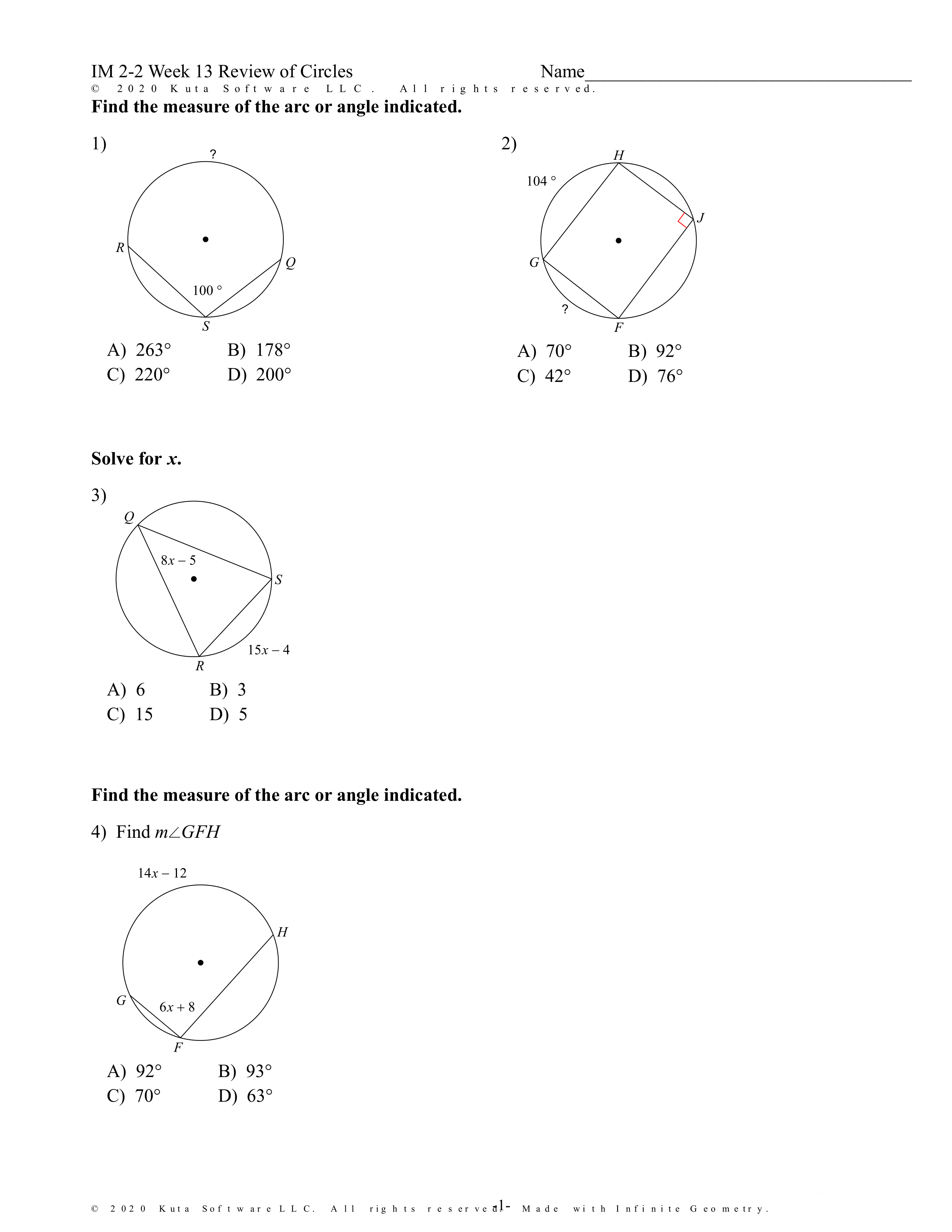 I IM 2 Week 13 Review of Circles