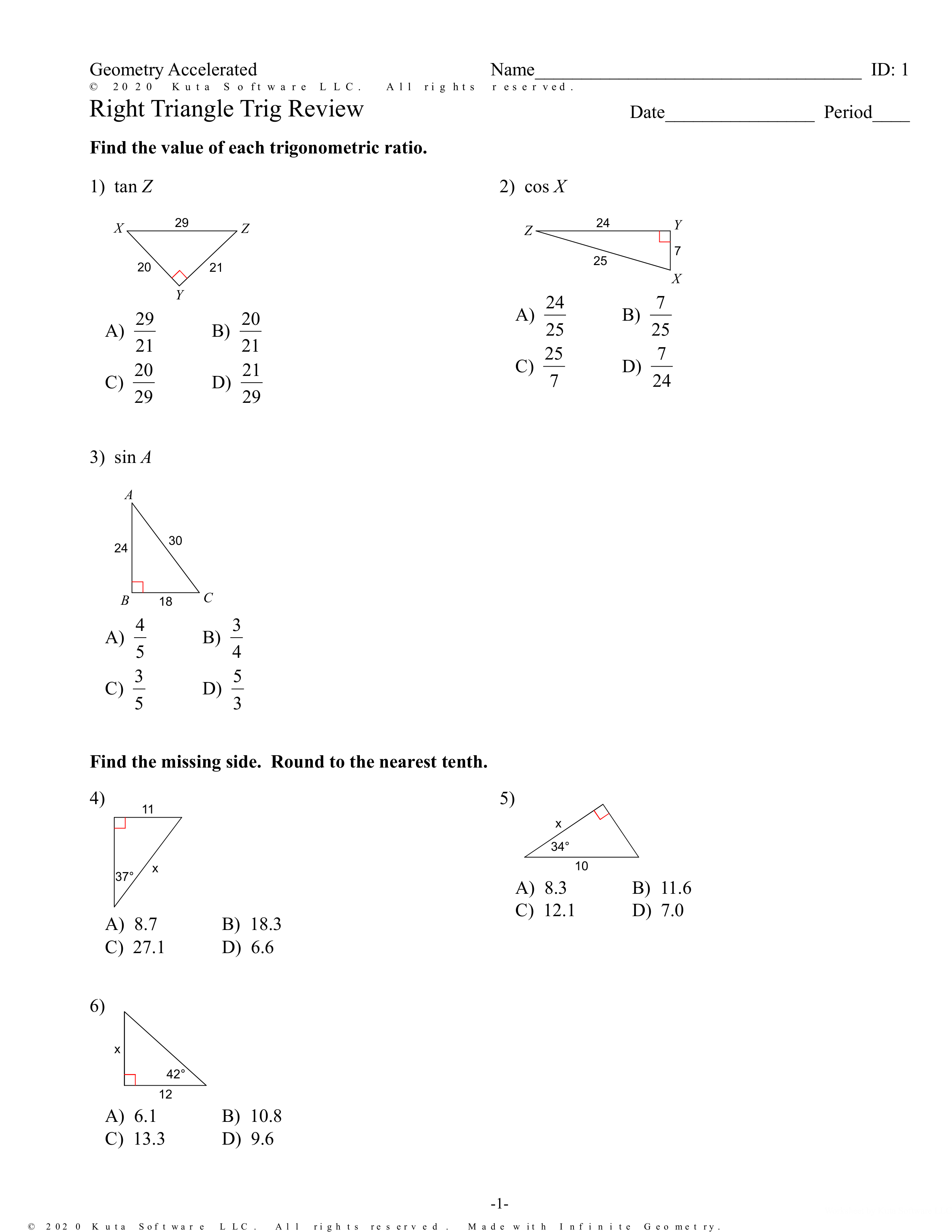 Right Triangle Trig Review