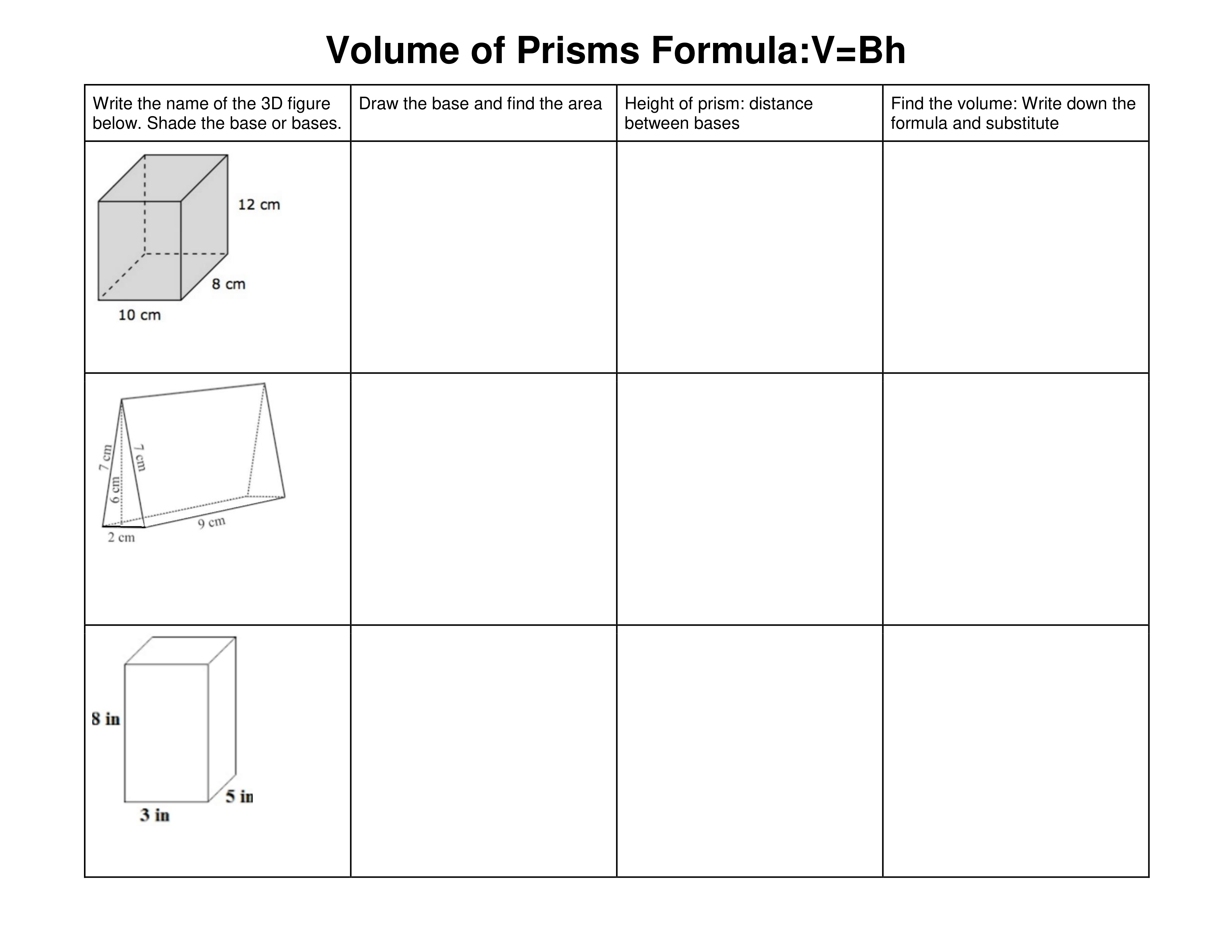 Volume of Prisms