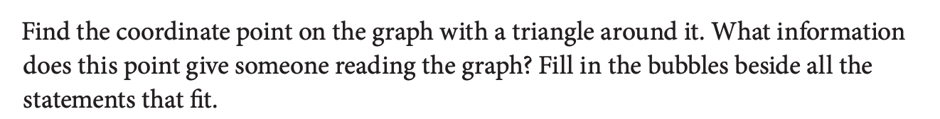 Find the coordinate point on the graph with a triangle around it. What information does this point give someone reading the graph? Fill in the bubbles beside all the statements that fit.