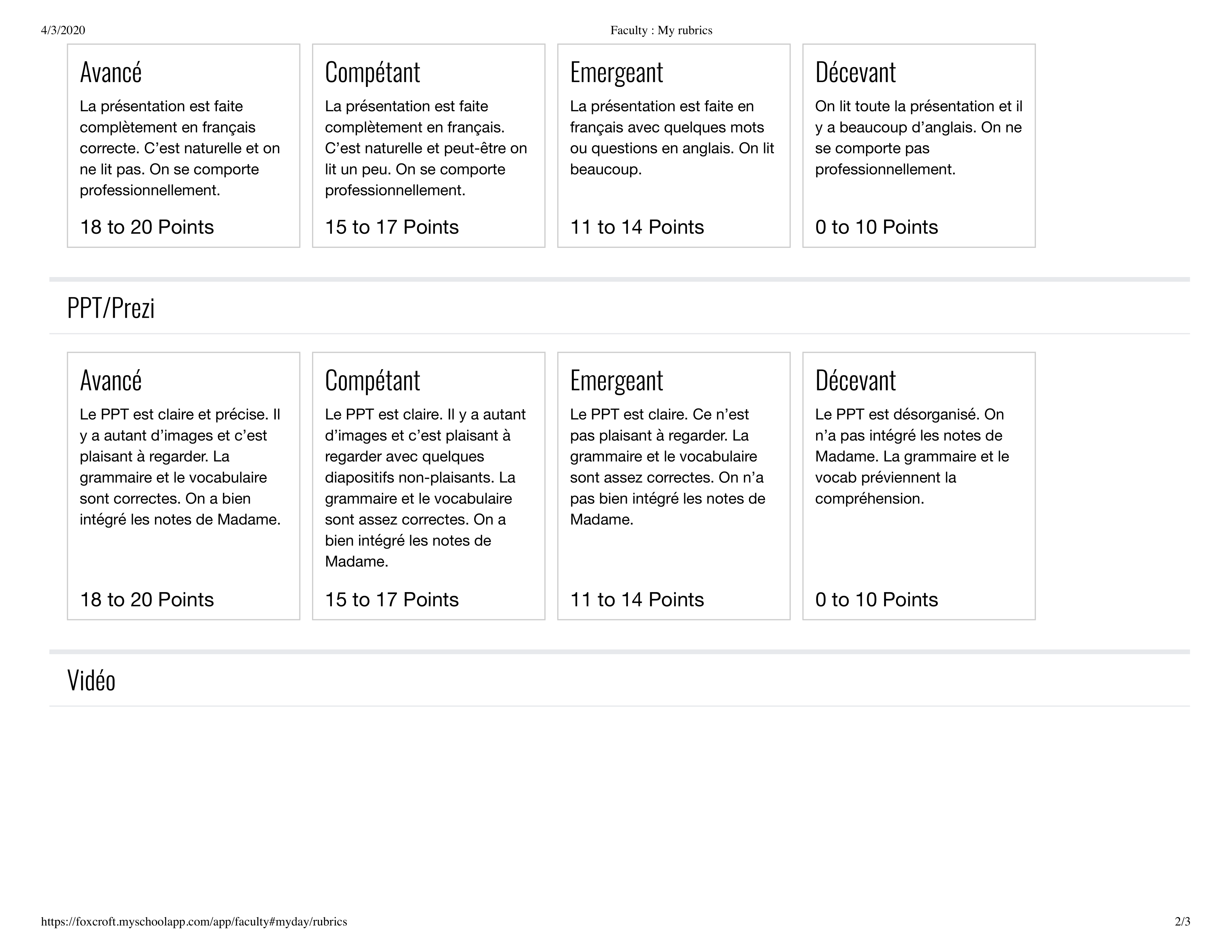 At what level would you rate the PPT/Prezi? Was the presentation compelling and visually appealing? Was the French correct? Why did you rate the at that level?