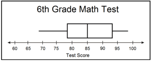 The students in Mr. Burch’s 6th grade science class recently took a test. The results were converted into the box-and-whisker plot below. What conclusion can you make from the data?