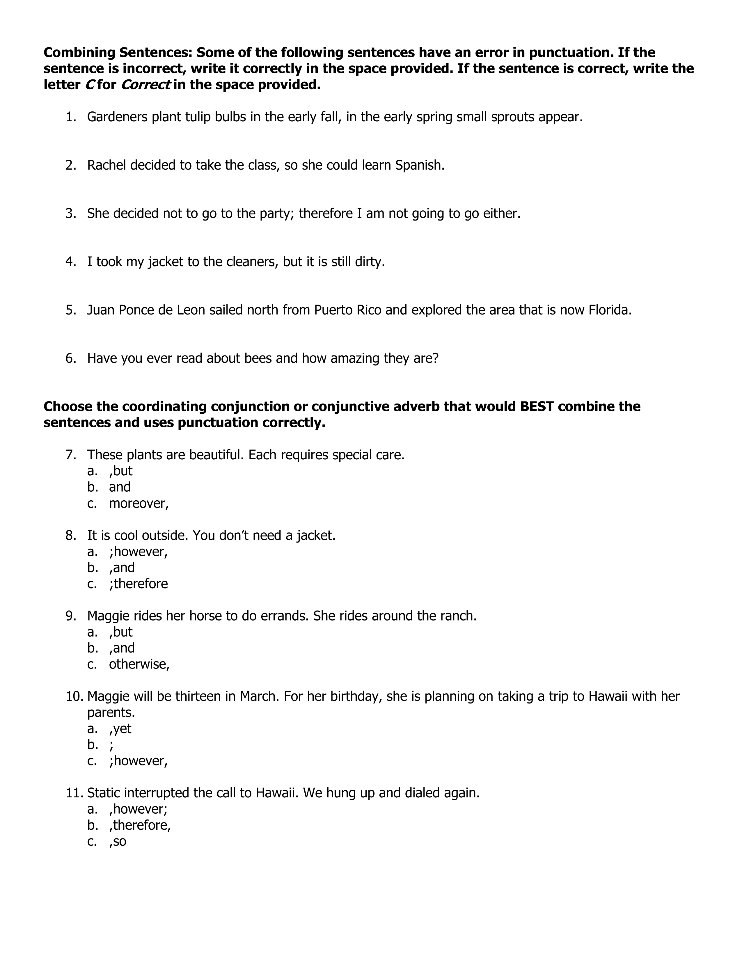 Which coordinating conjunction or conjunctive adverb would BEST combine the sentences and uses puncutation correctly?