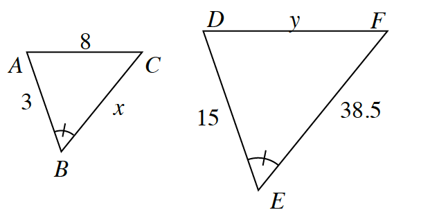 Problem 9-45c: ΔABC is similar to ΔDEF. Find y.
