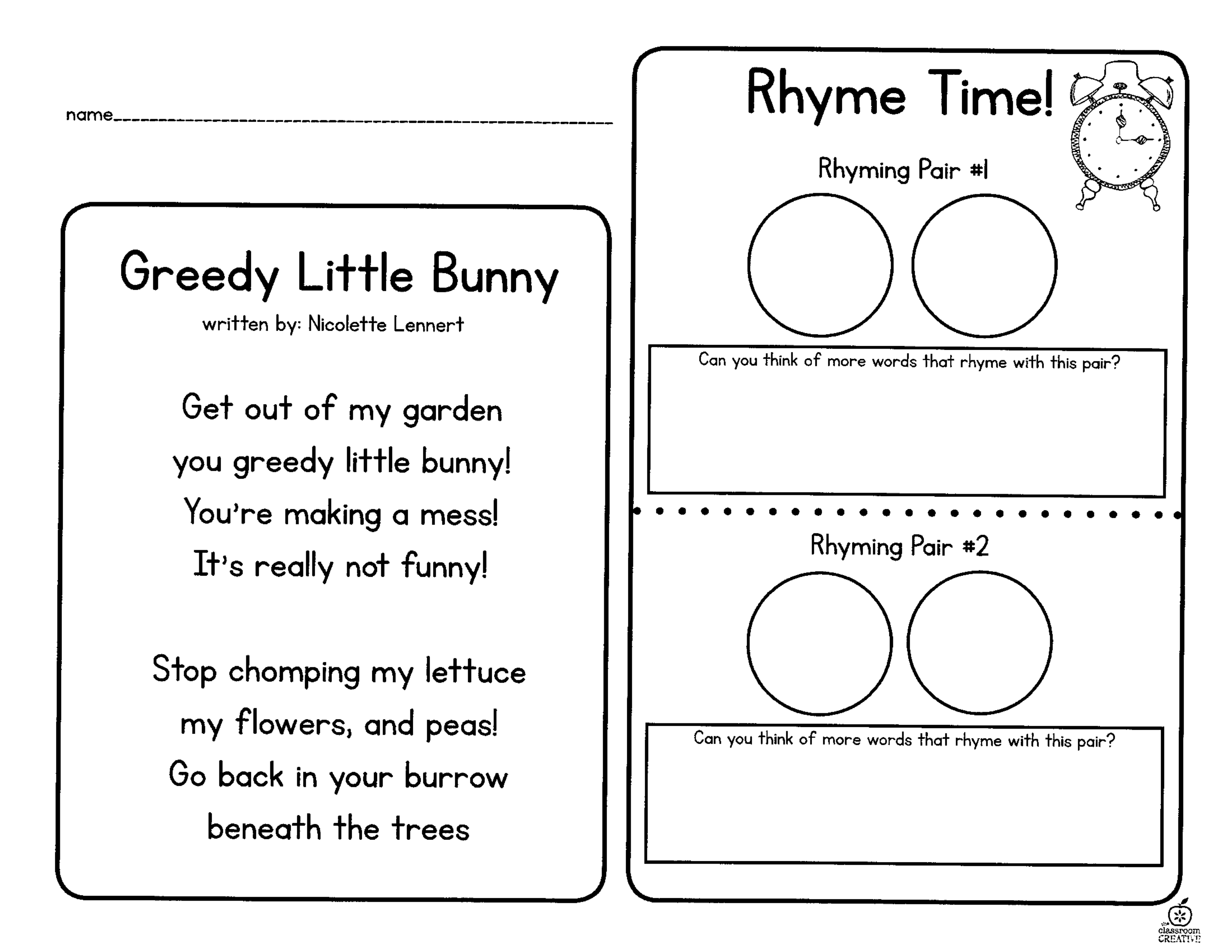 What is one pair of rhyming words?