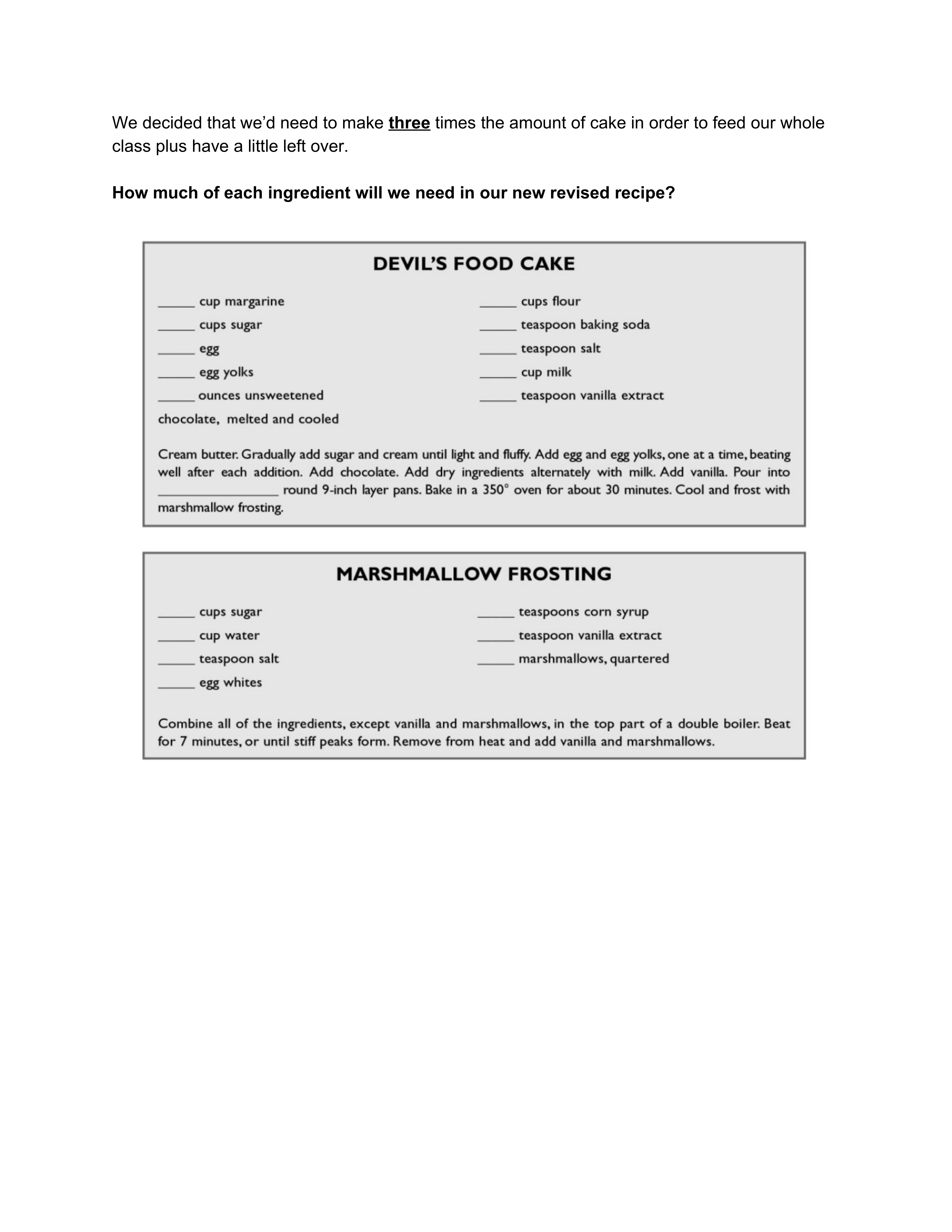 Devil's Food Cake and Marshmallow Frosting Activity