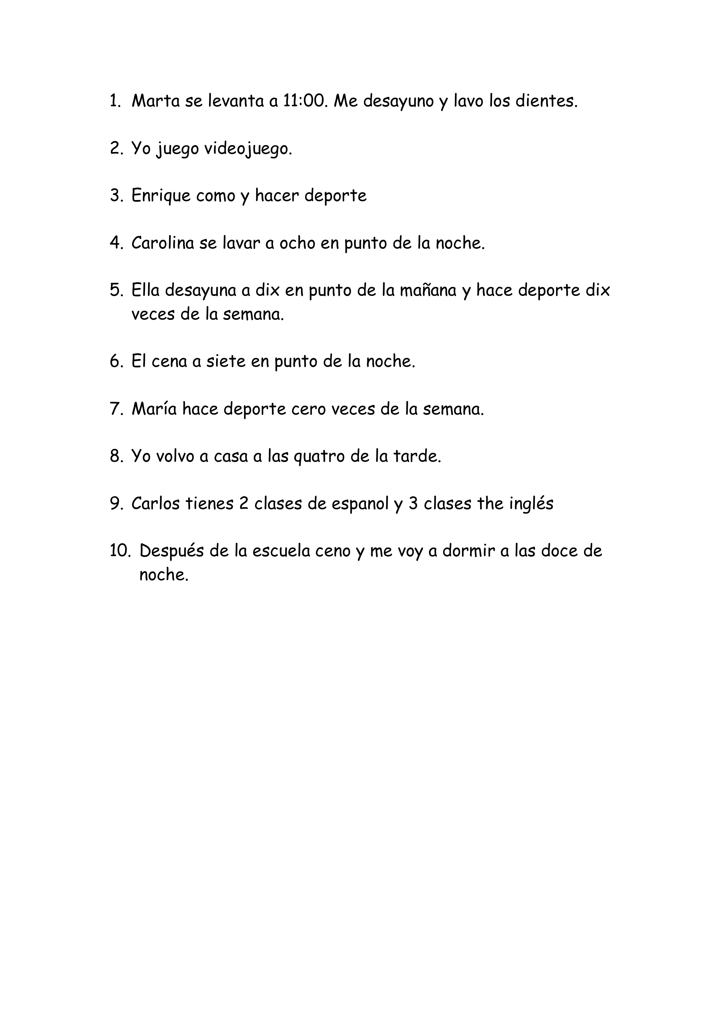 Estas frases tienen errores, corrige los errores