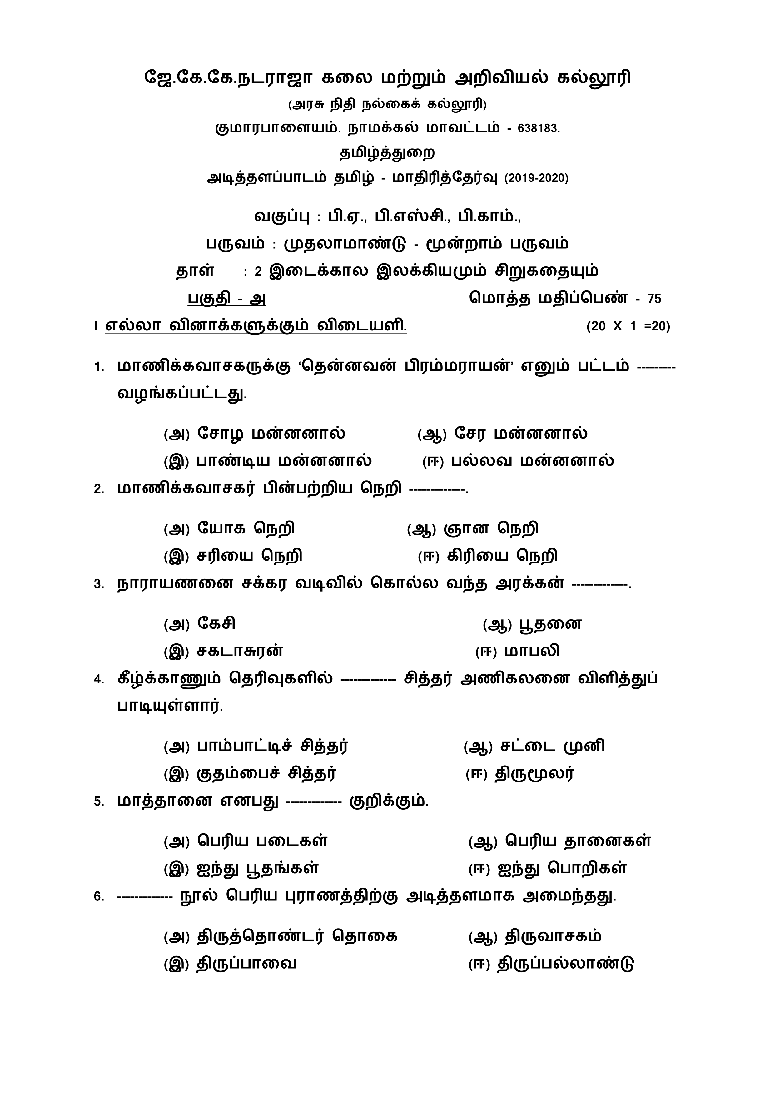 UG I YEAR MODEL APR-2020 - ONLINE TEST
