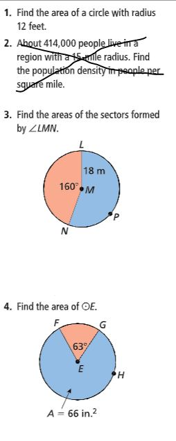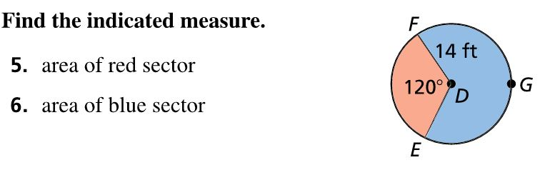 Case 1: Find the area of the blue sector. Hint: find the measure of arcFGE before setting up your proportion.