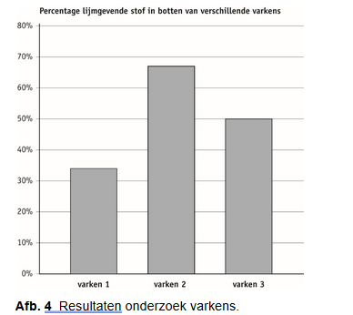 Van drie varkens wordt een stukje rib onderzocht op het percentage lijmstof. De resultaten van dit onderzoek zijn in afbeelding 4 weergegeven.