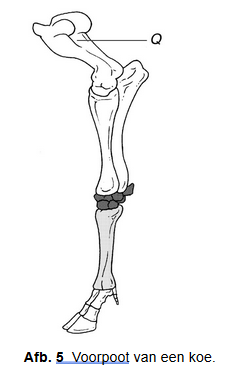 In afbeelding 5 is een voorpoot van een koe schematisch getekend.