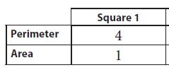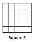 In your answer, write: For Square 5, perimeter is ____ and area is ____.