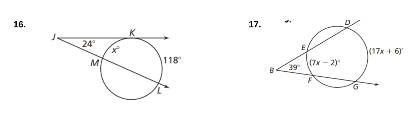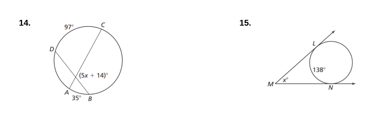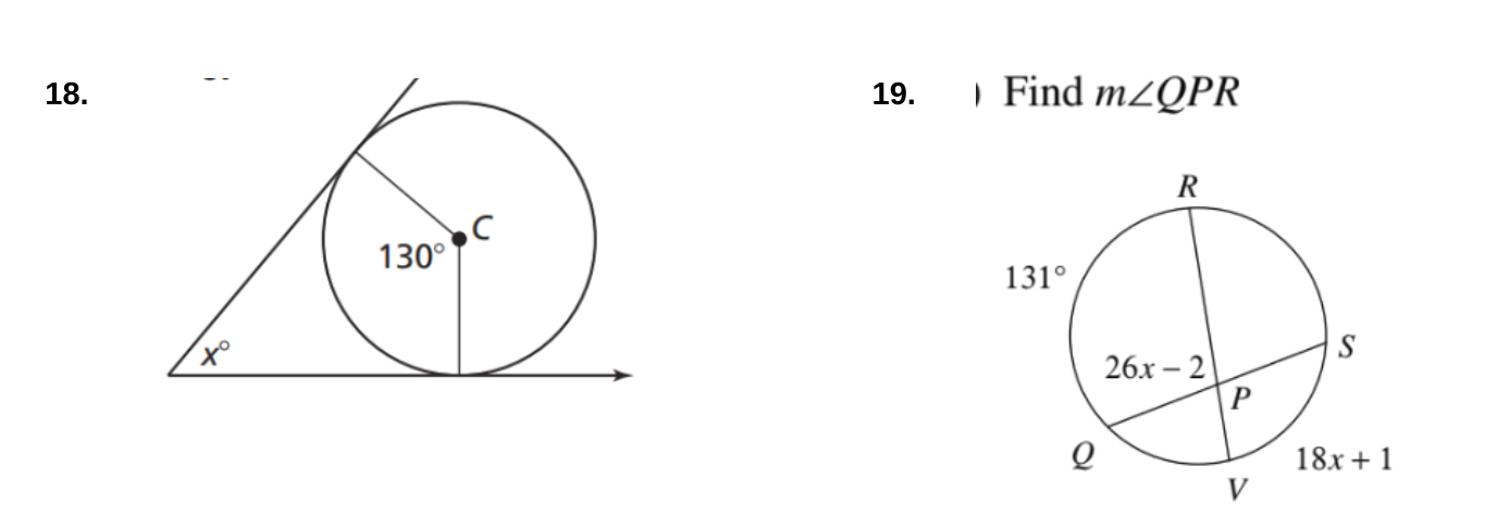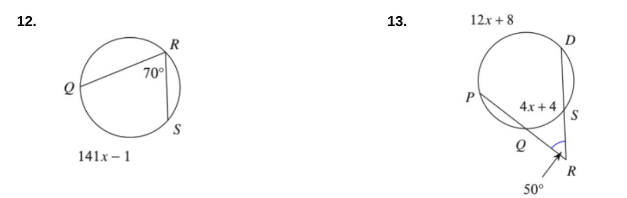 #12-18: Solve for x. Assume that lines which appear tangent are tangent.