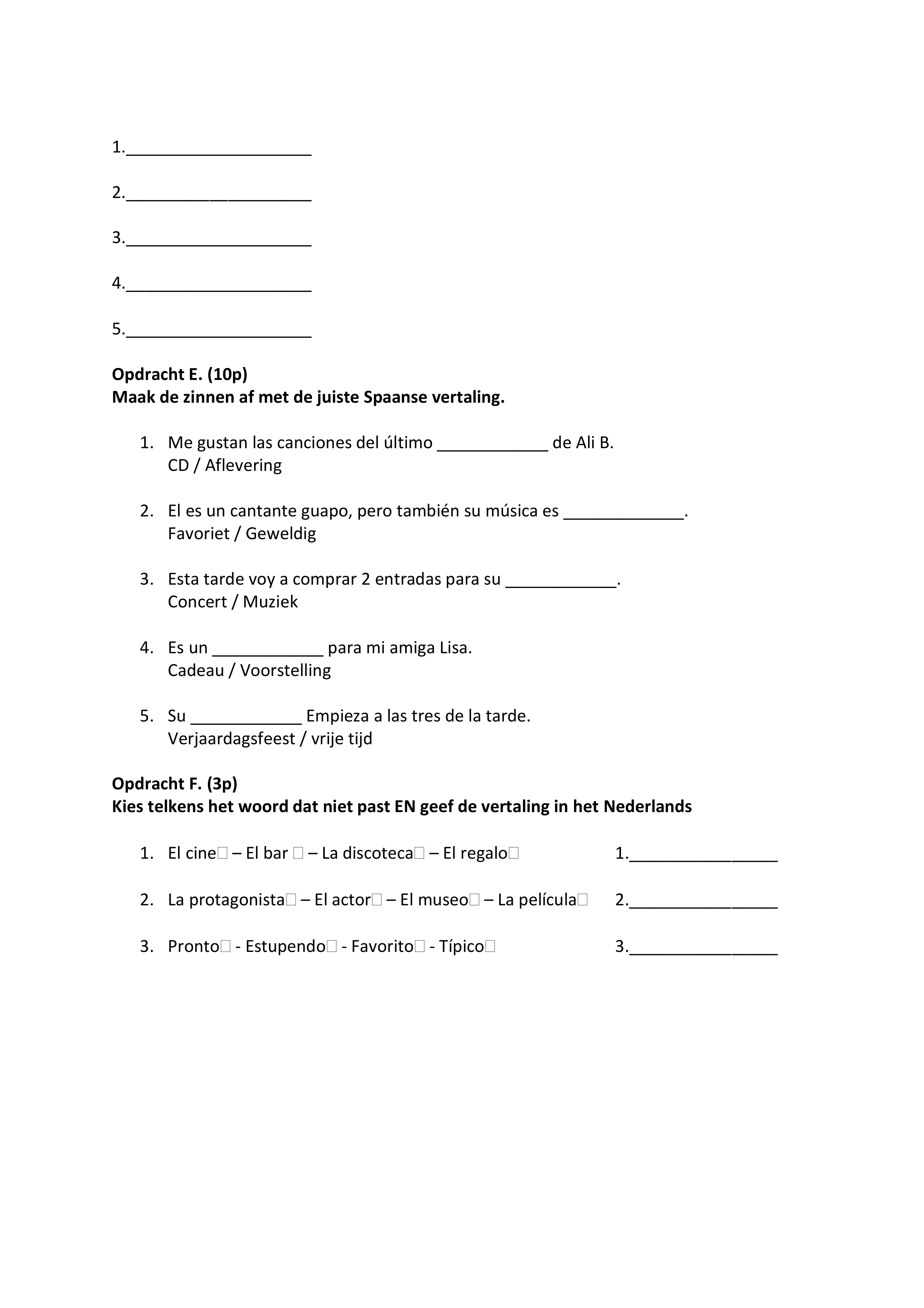 E3. Concert / Muziek? geef de Spaanse vertaling van je keuze als antwoord.