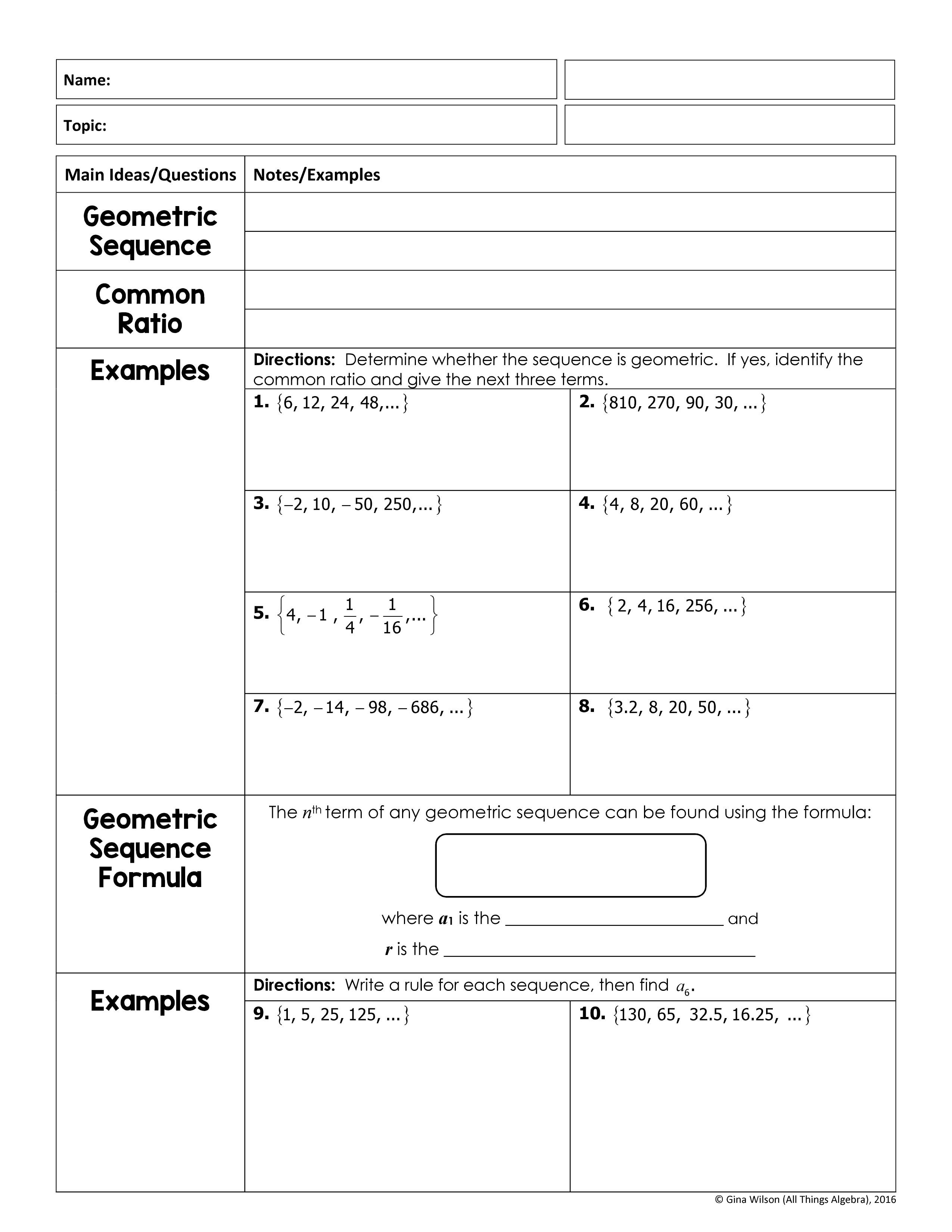 Practice over Geometric Sequences - writing the rules and finding the nth term.