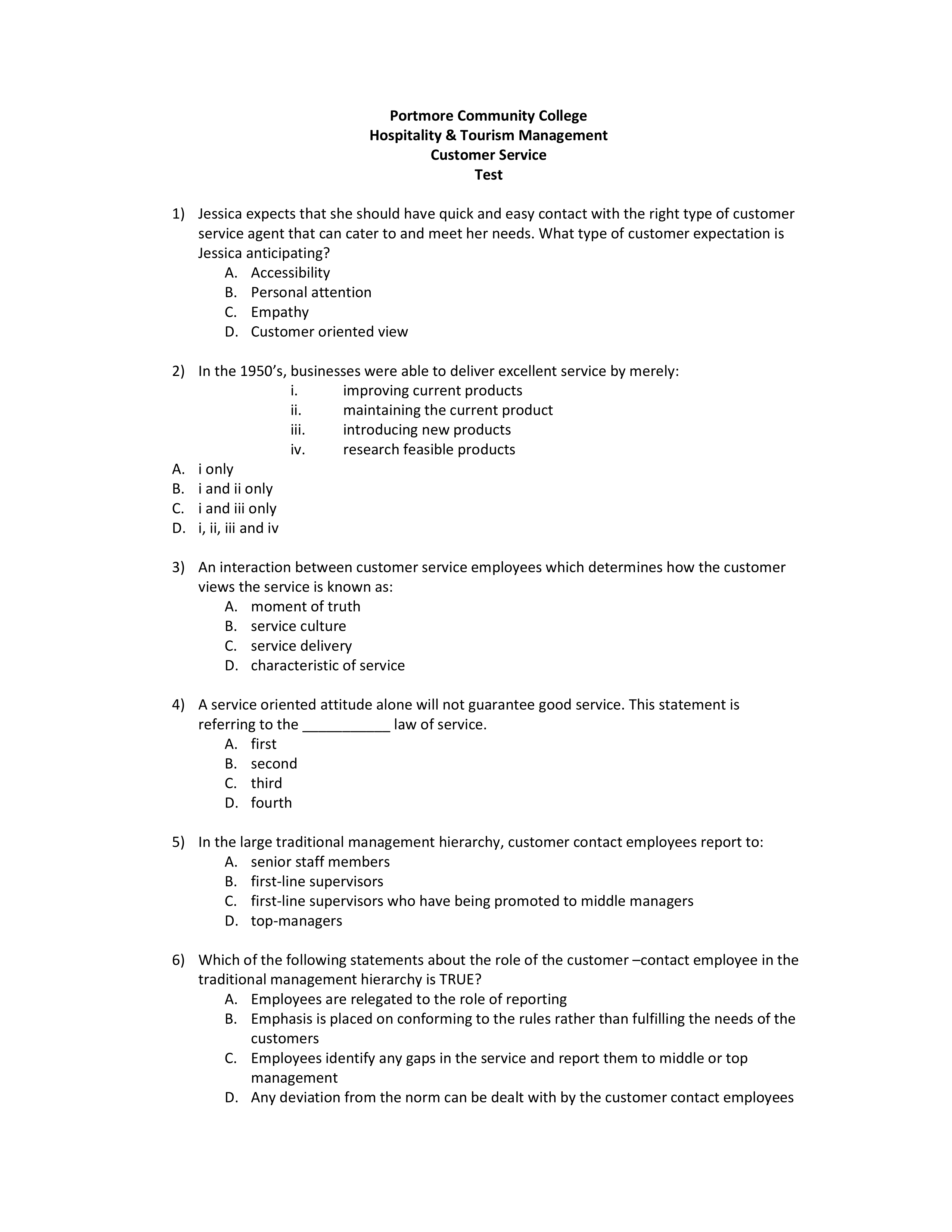 Customer Service HOSP1102