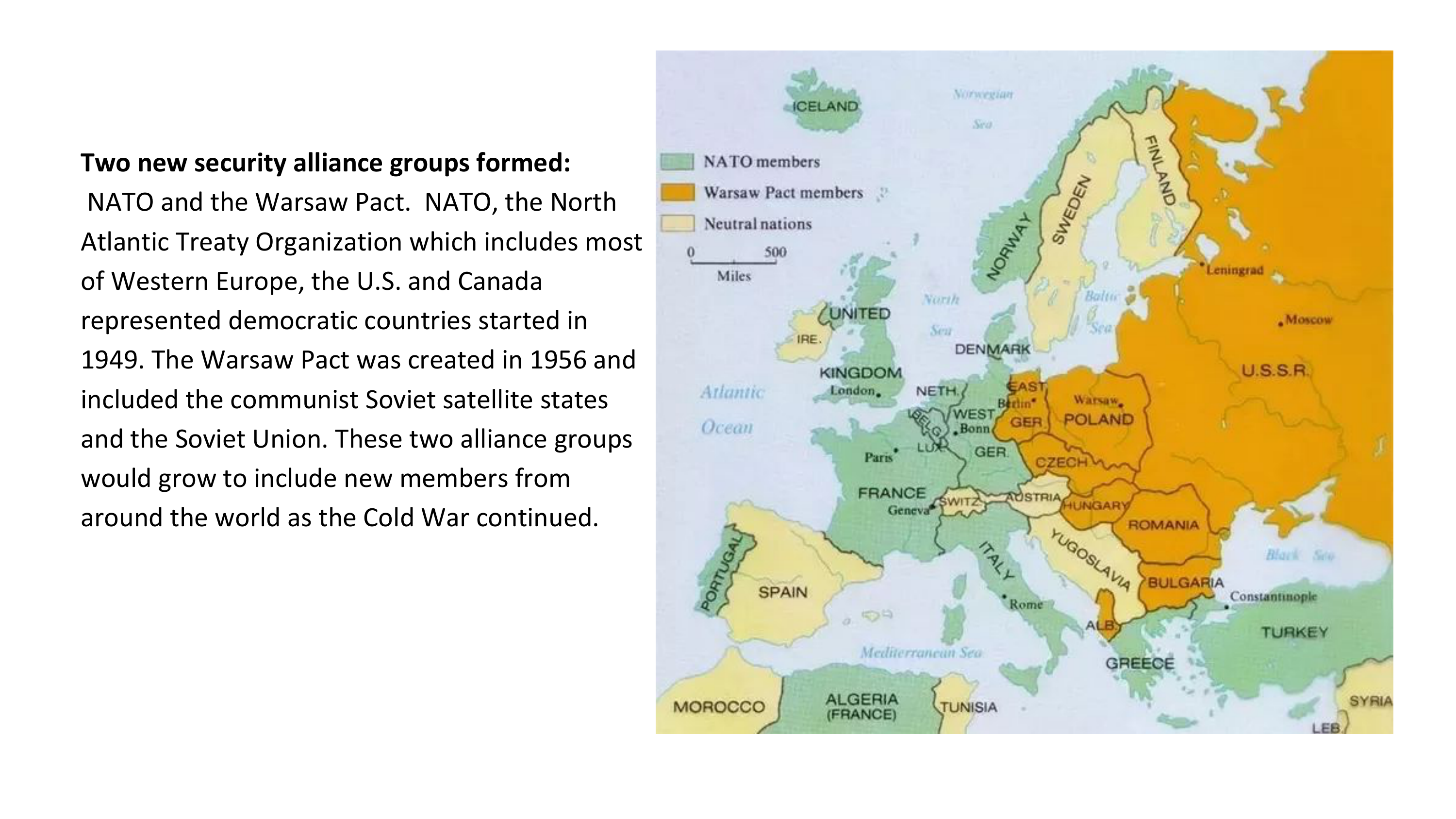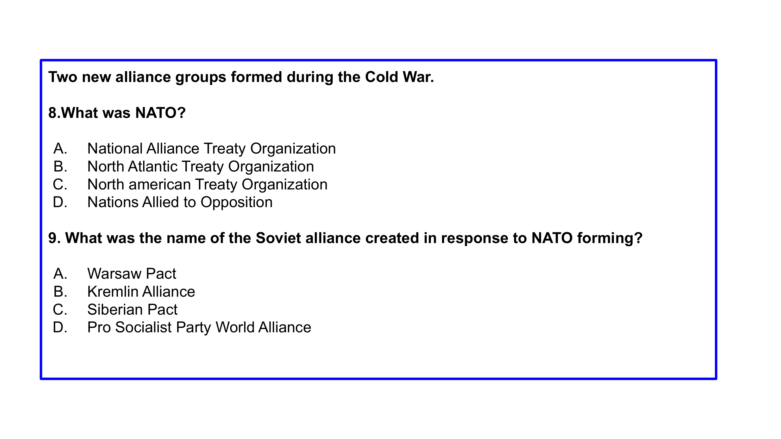 Two new alliance groups formed during the Cold War.8. What was NATO?