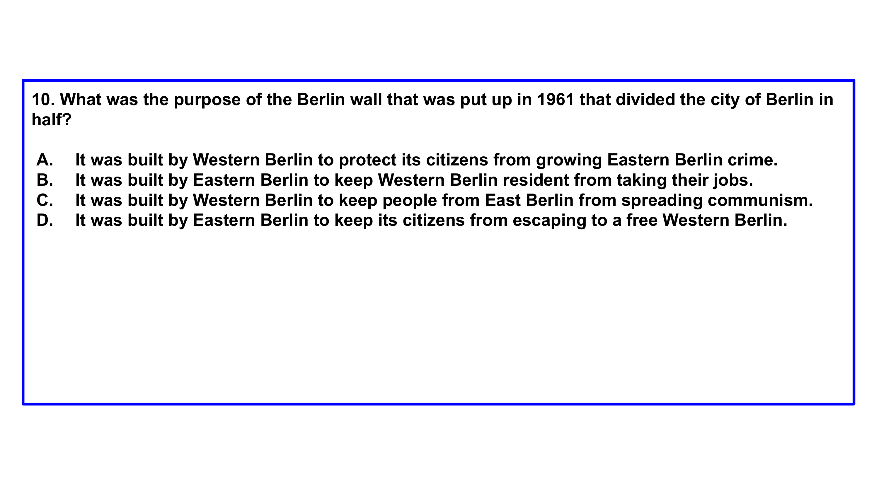 What was the purpose of the Berlin wall that was put up in 1961 that divided the city of Berlin in half?