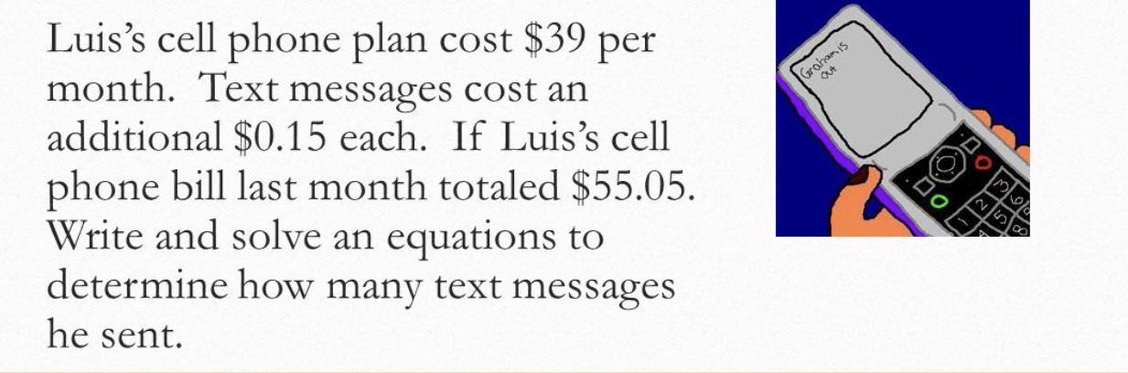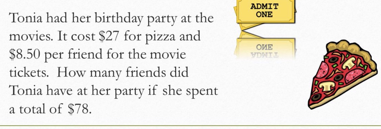 Question 4: Write an equation for the following word problem. Find the solution to the word problem you created. Show all your work!