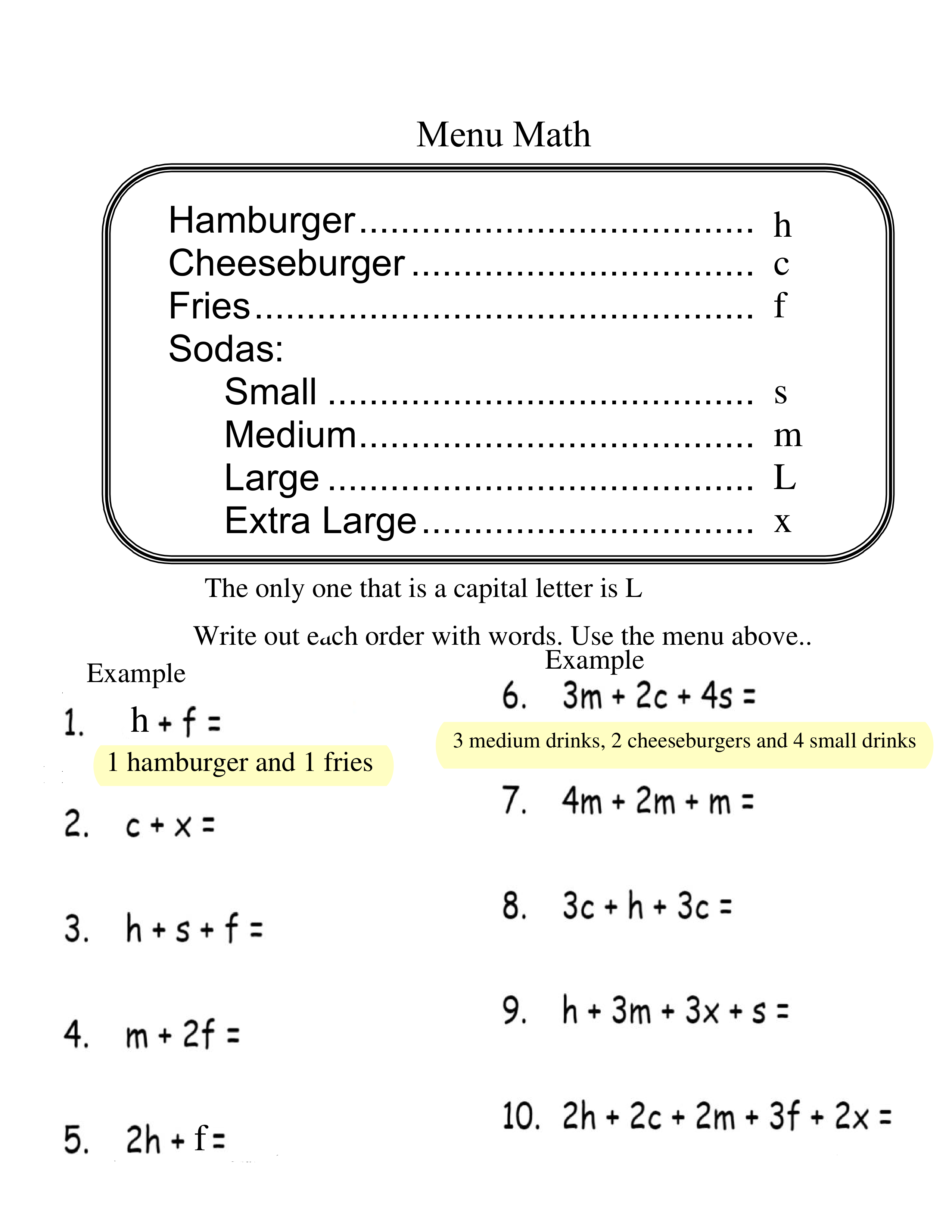 Example: Copy the answer from the worksheet.3m + 2c + 4s