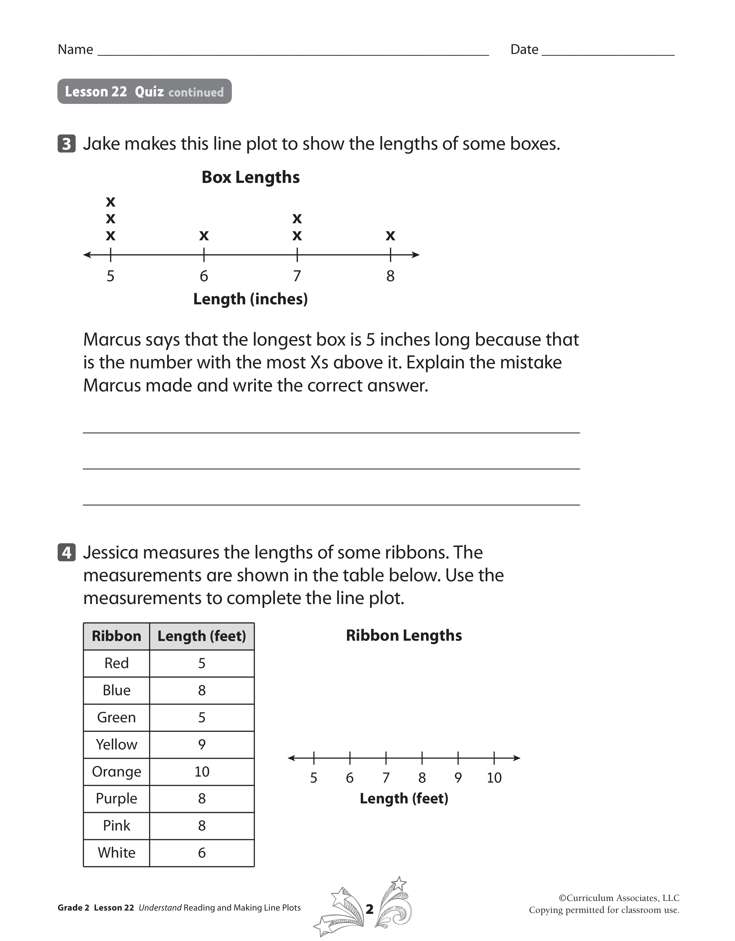 Jessica measures the lengths of some ribbons. The measurements are shown in the table below. Use the measurements to complete the line plot.