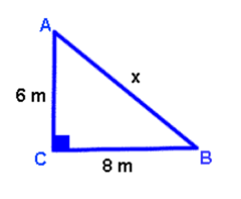 Leg (A-B) is 5 meters and hypotenuse (B-C) is 13 meters, what is the length of the other leg (A-C)?