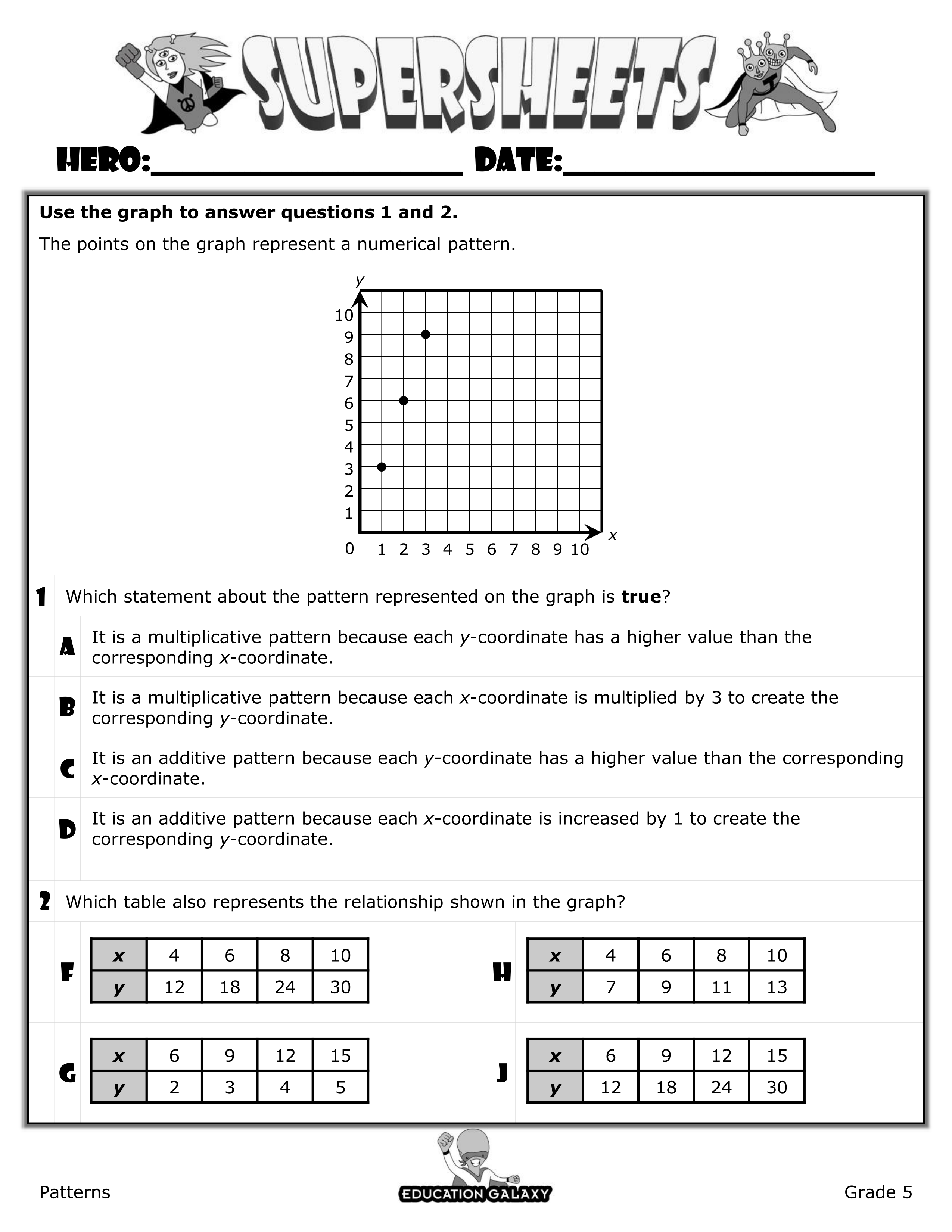 Which table also represents the relationship shown in the graph? [determine the rule then solve]