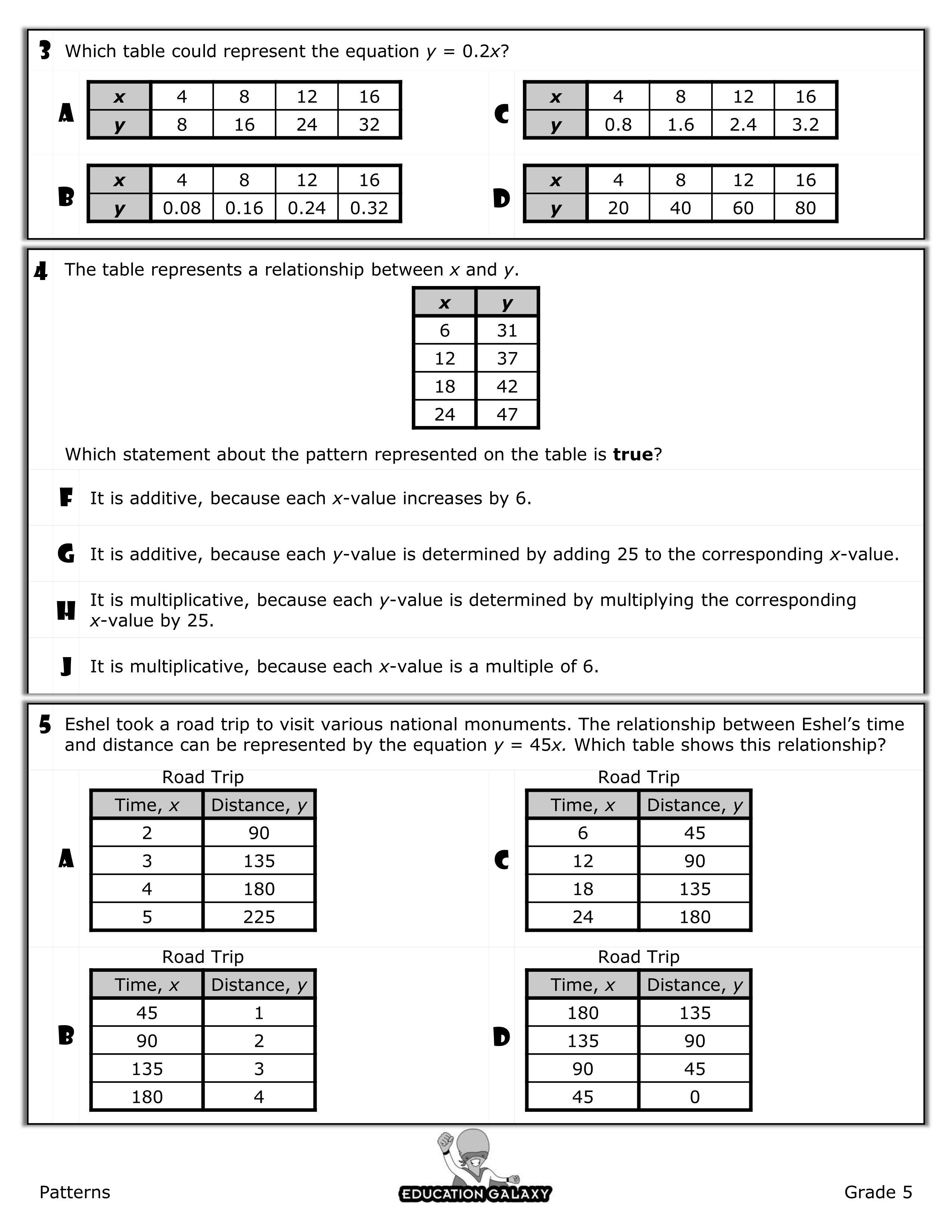 Which table could represent the equation y = 0.2(x)? [watch for the decimal]